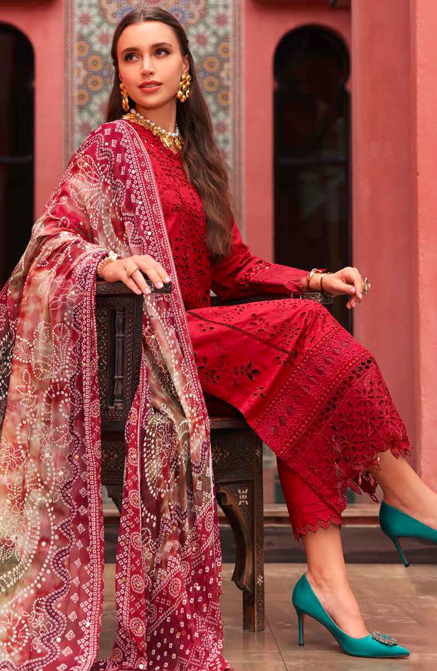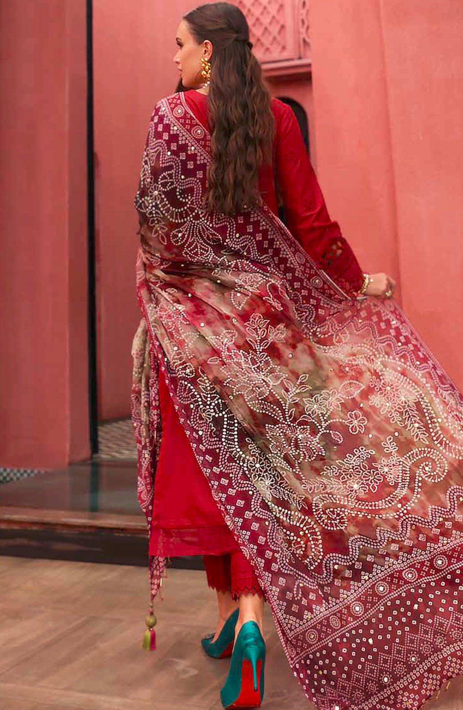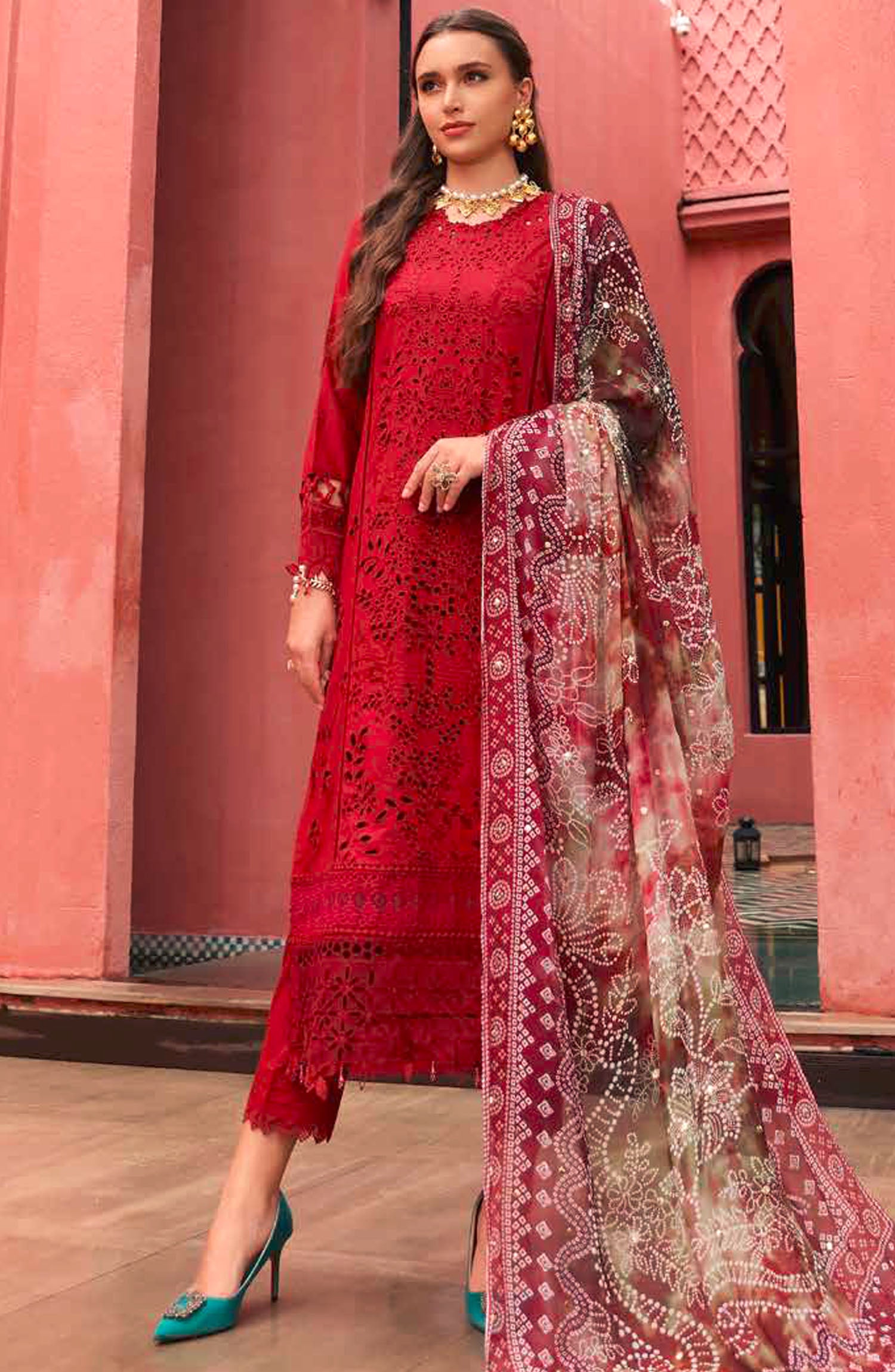The standard style comes as a long-sleeved kameez with dupatta and trouser/shawlar.