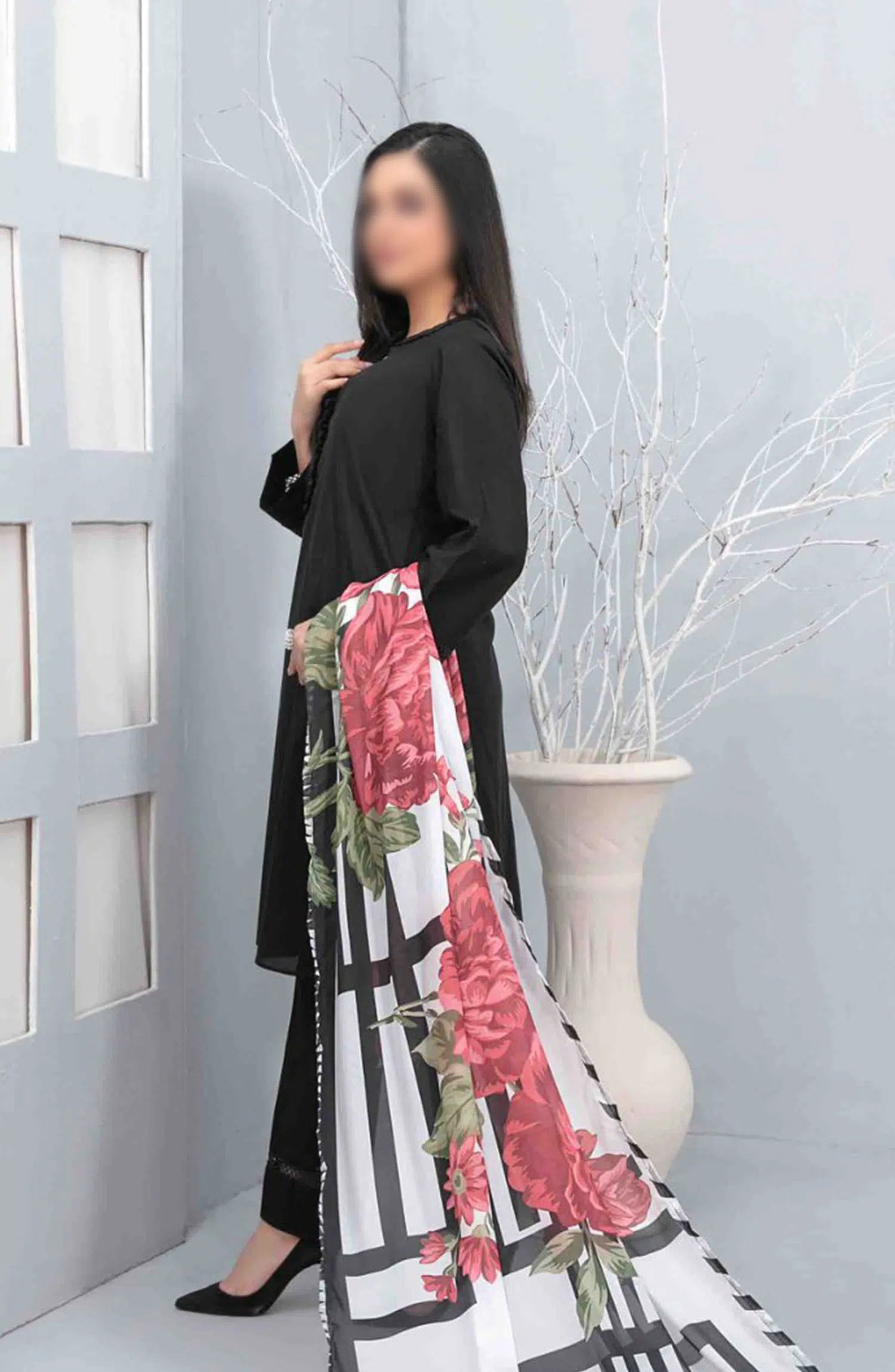 Modest Embroidered Khaddar Stitched 3 Piece Suit - 9990-Blk - MOD25WNT - Black - Winter Collection