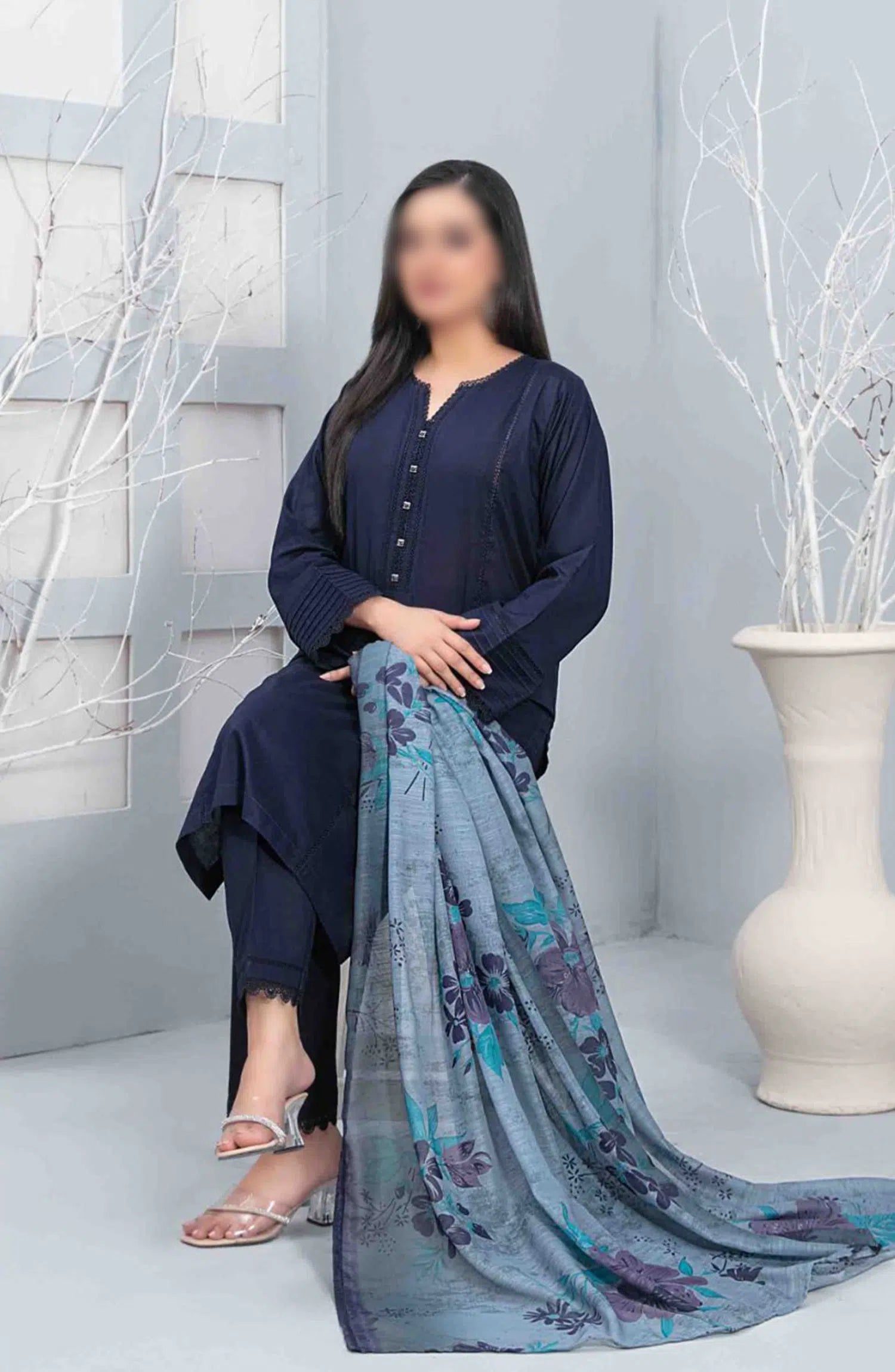 Berna - Stitched Cotton Solids 3pcs Collection has been styled in the image for photography and illustrative purposes.