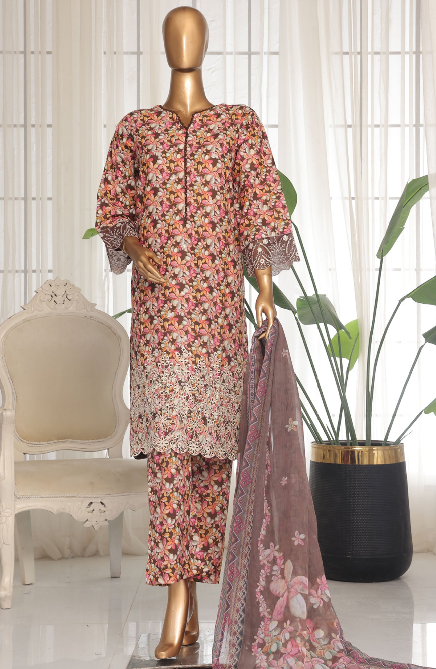 Bin Saeed Chikankari Lawn Stitched 3 Piece Suit - D-02 - BS25ECLV1 - Purple - Summer Collection