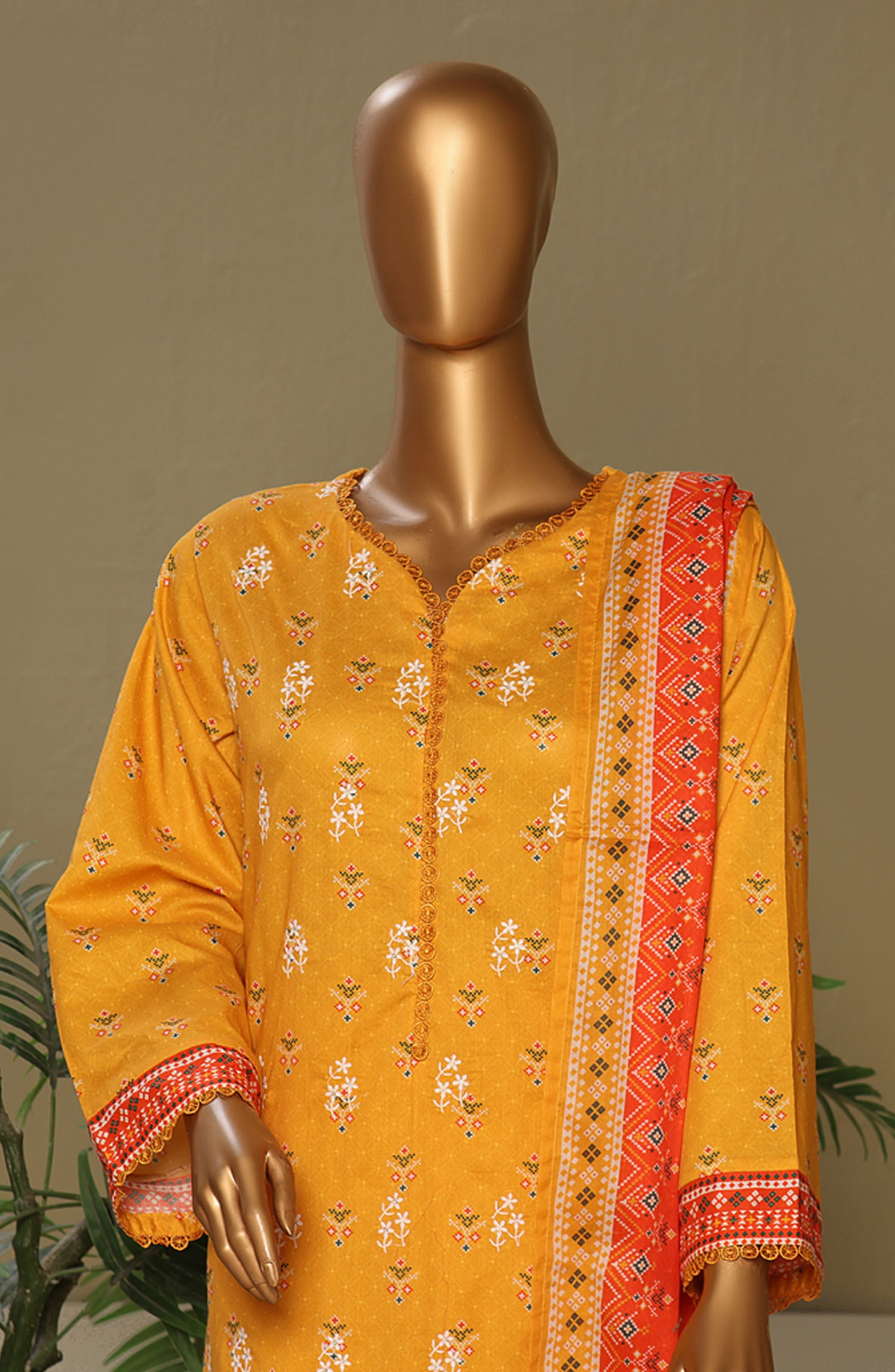 Home Bin Saeed Chikankari Lawn Stitched 3 Piece Suit - D-03 - BS25LC - Mustard - Summer Collection