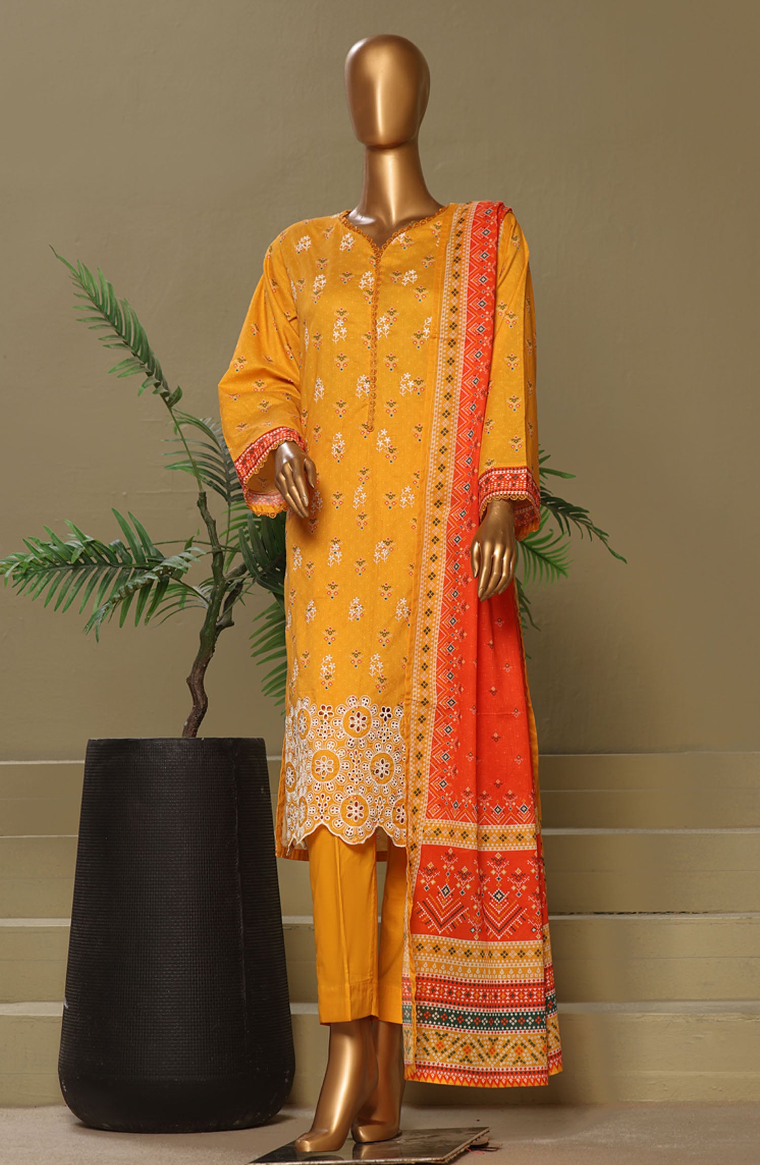 Bin Saeed Chikankari Lawn Stitched 3 Piece Suit - D-03 - BS25LC - Mustard - Summer Collection