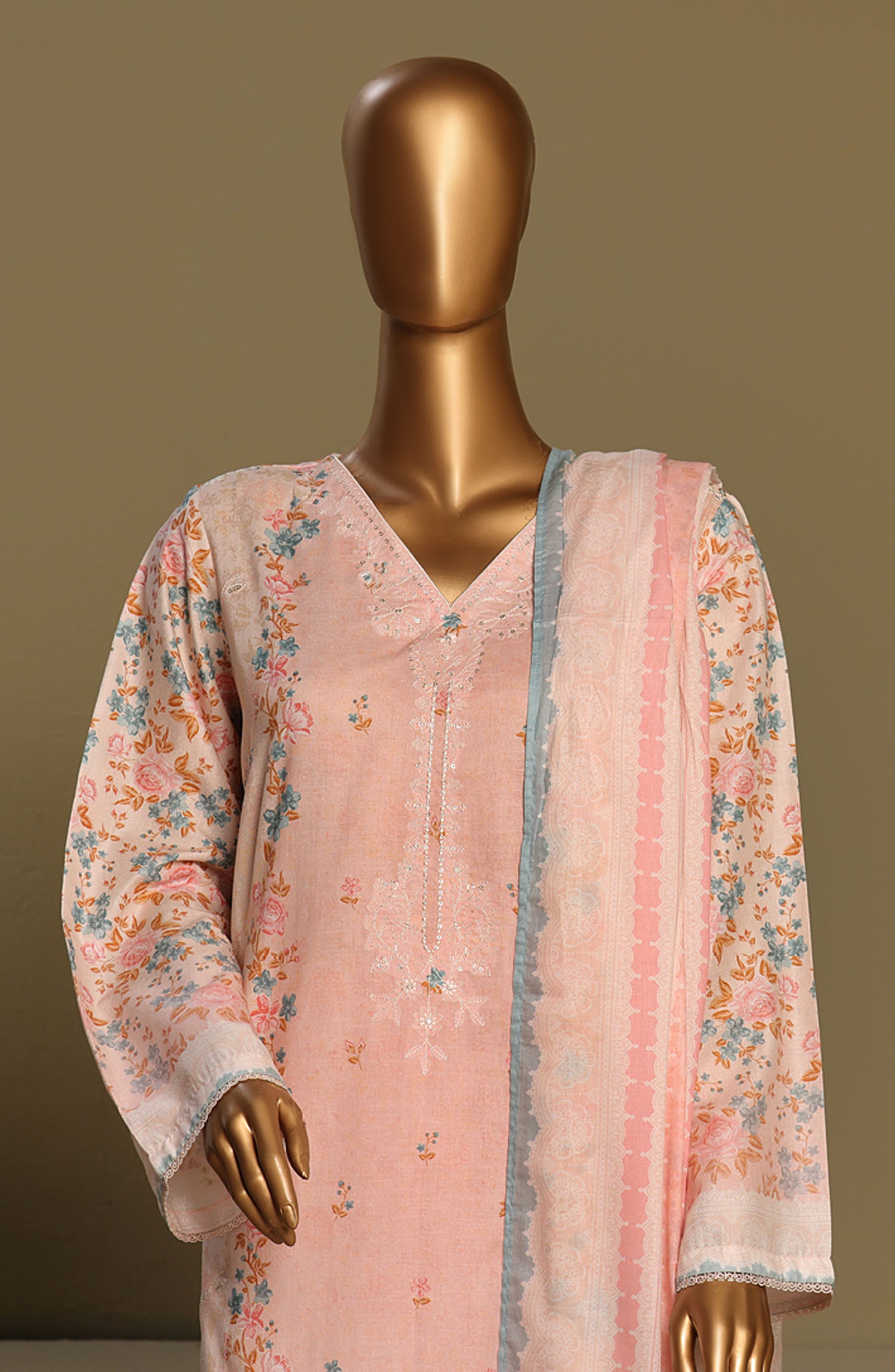 Modest Embroidered Khaddar Stitched 3 Piece Suit - 10040-Pnk - MOD25WNT - Pink - Winter Collection