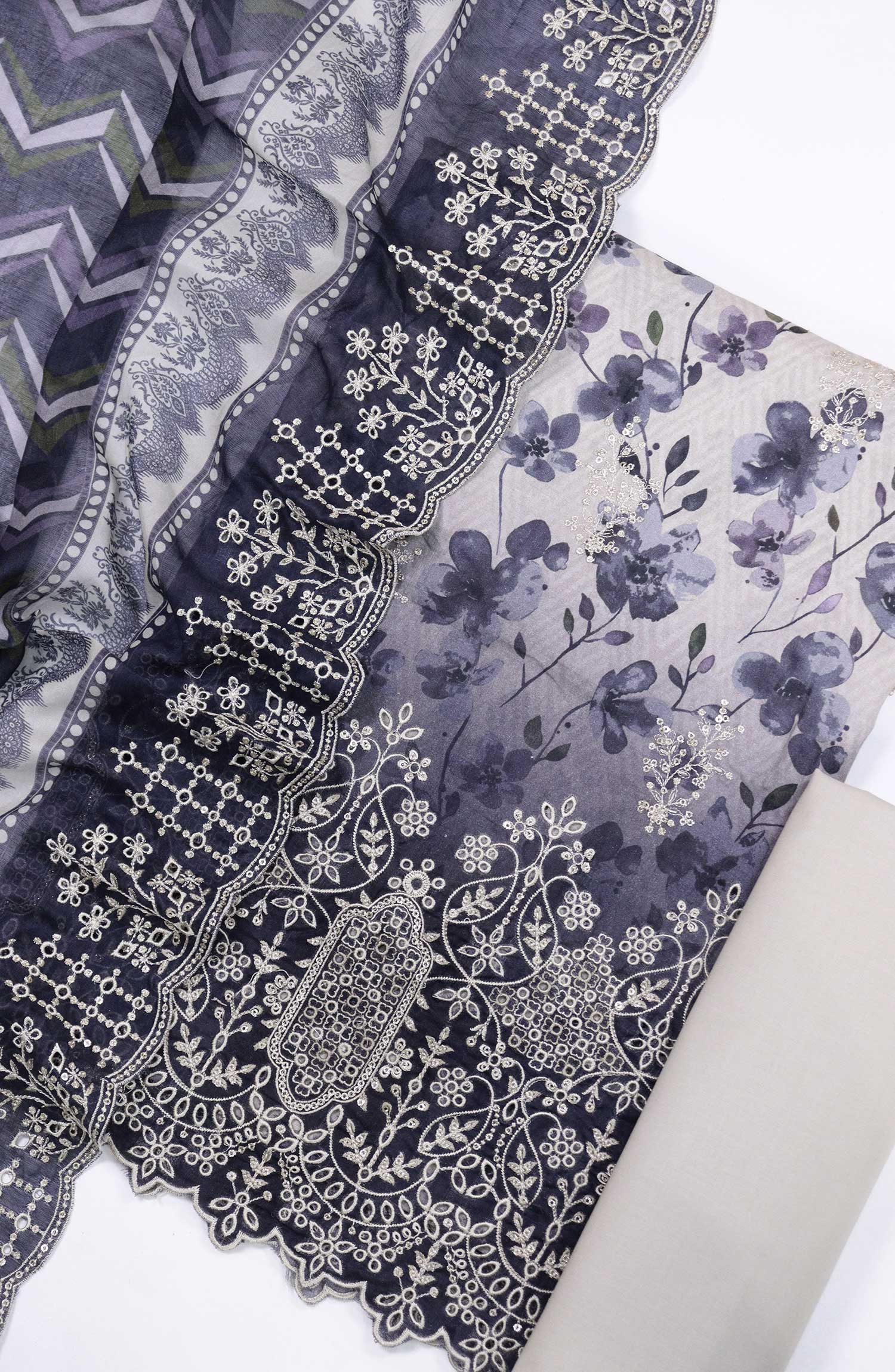 Amna Khadija Embroidered Crinkle Chiffon Unstitched 3 Piece Suit - D-01 - AM25LXC - Blue - Formals Collection