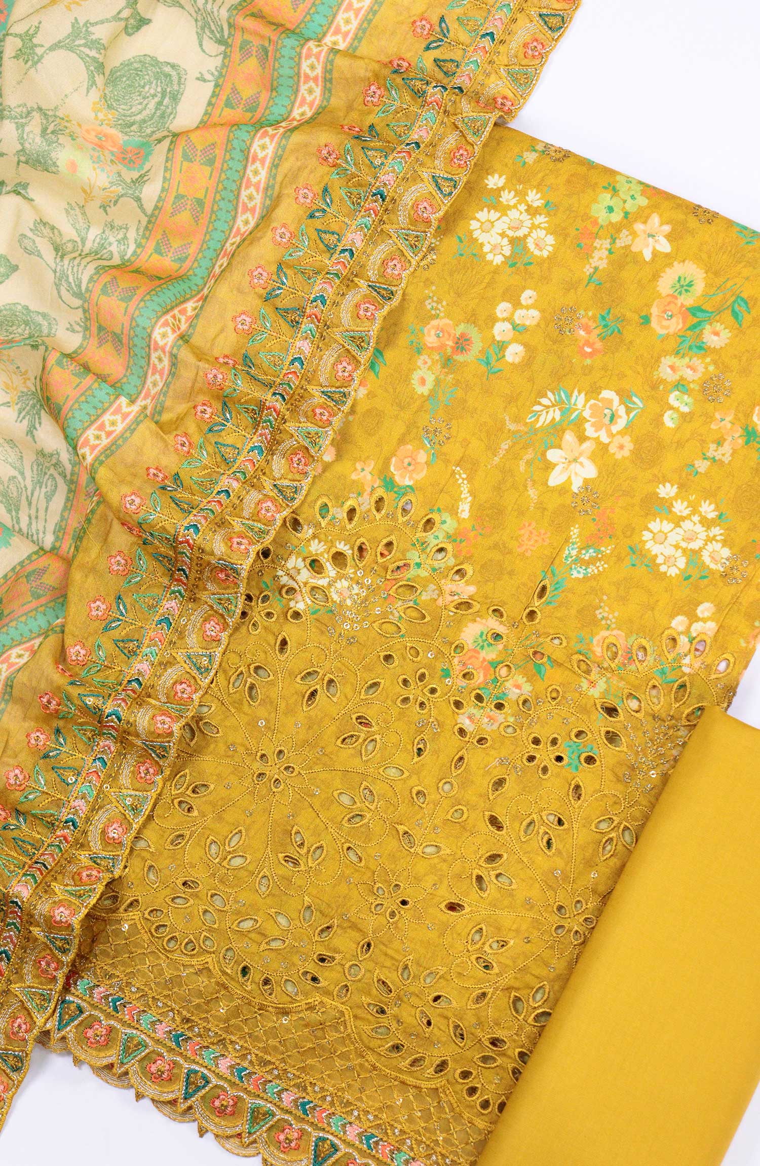 Home Bin Saeed Chikankari Lawn Unstitched 3 Piece - D 25 - BS25PE - Yellow - Summer Collection