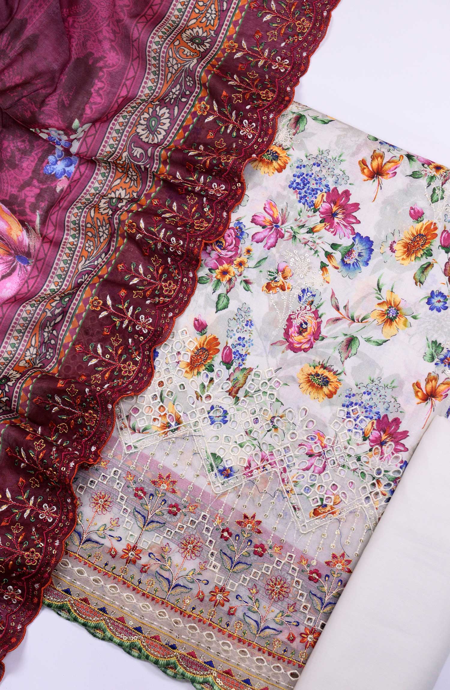 Shanzey Printed Cambric Stitched 3 Piece Suit - SHK-4901 - SHZ25CAM - Off White - Girls Winter Collection