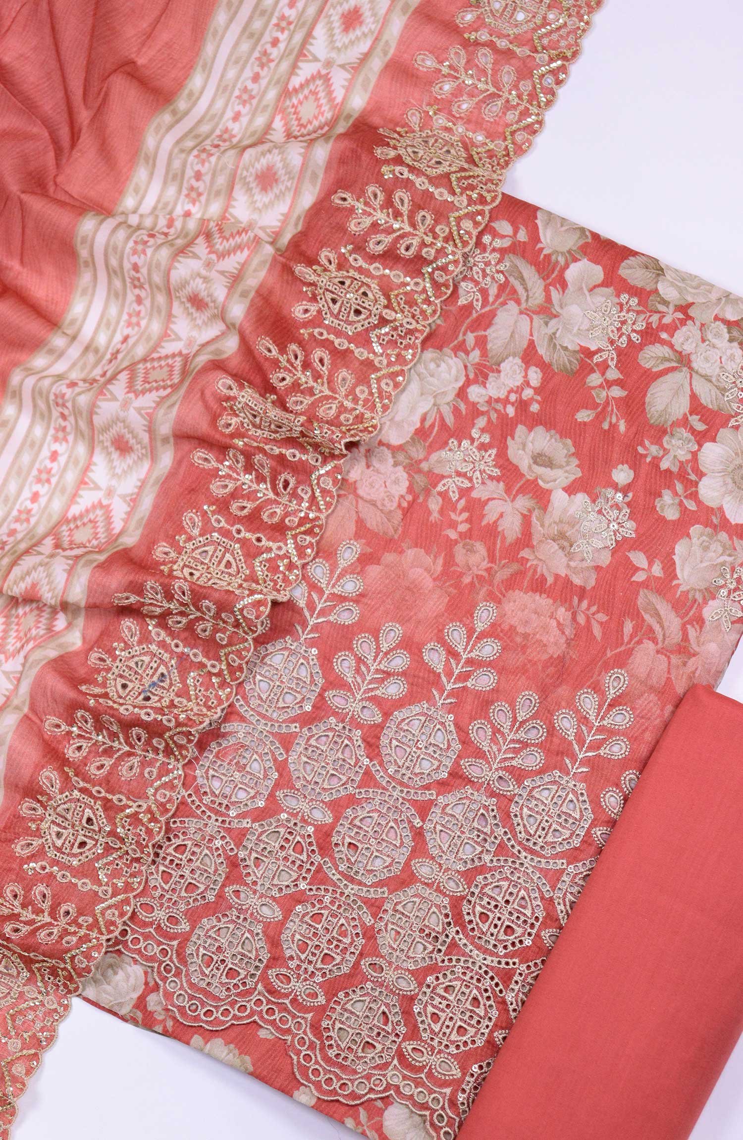 Shanzey Printed Cambric Stitched 3 Piece Suit - SHK-4904 - SHZ25CAM - Pink - Girls Winter Collection