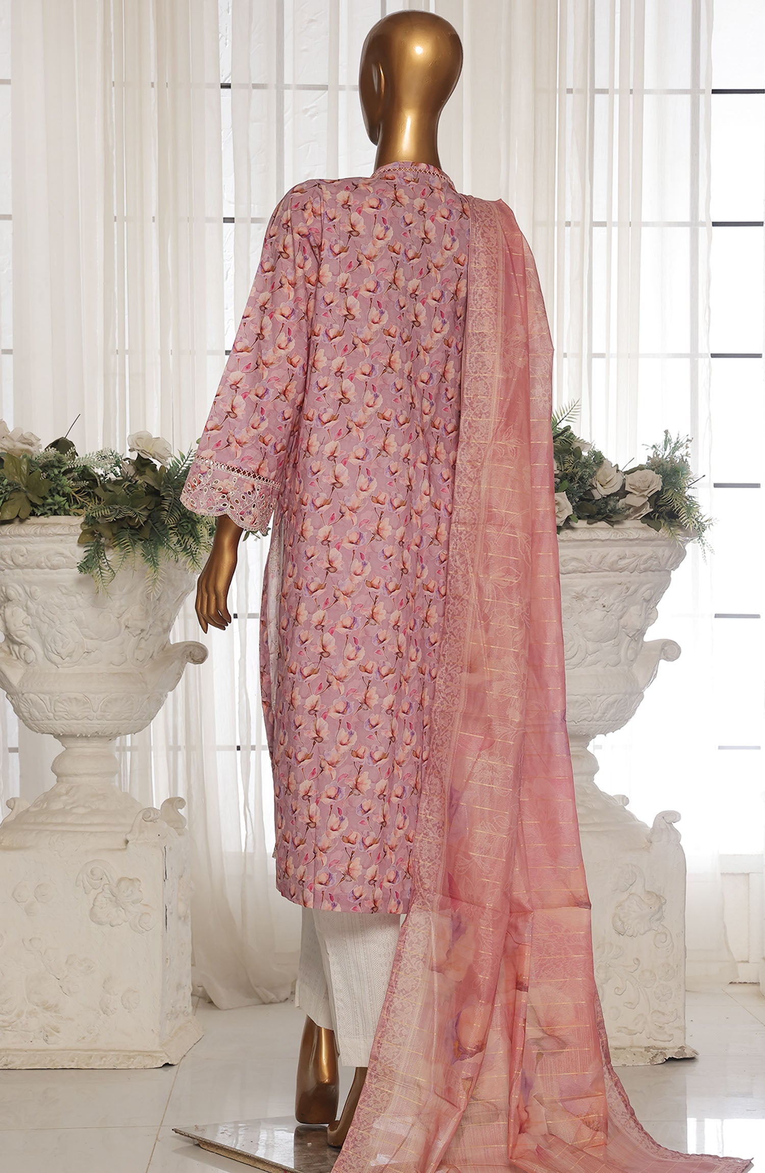 Bin Saeed Chikankari Stitched 3 Piece Suit - D-01 - BS25WNWC - Pink - Summer Collection