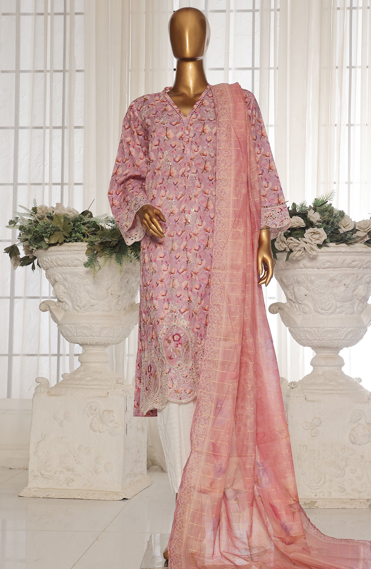 Home Bin Saeed Chikankari Stitched 3 Piece Suit - D-01 - BS25WNWC - Pink - Summer Collection