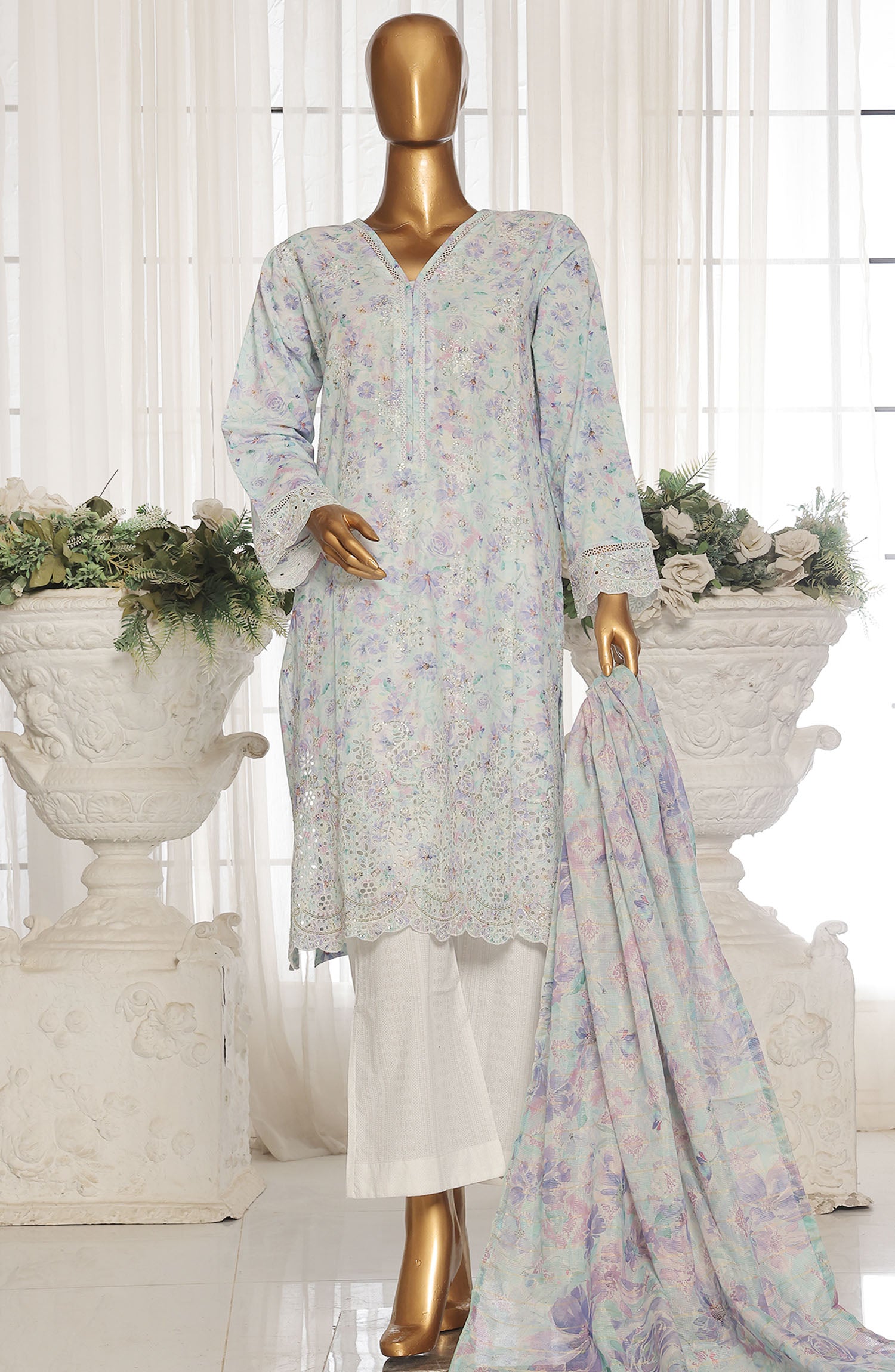 Sadabahar Signature Embroidered Khaddar Stitched 3 Piece Suit - Design-06 - SBD25SNA - Light Blue - Winter Collection
