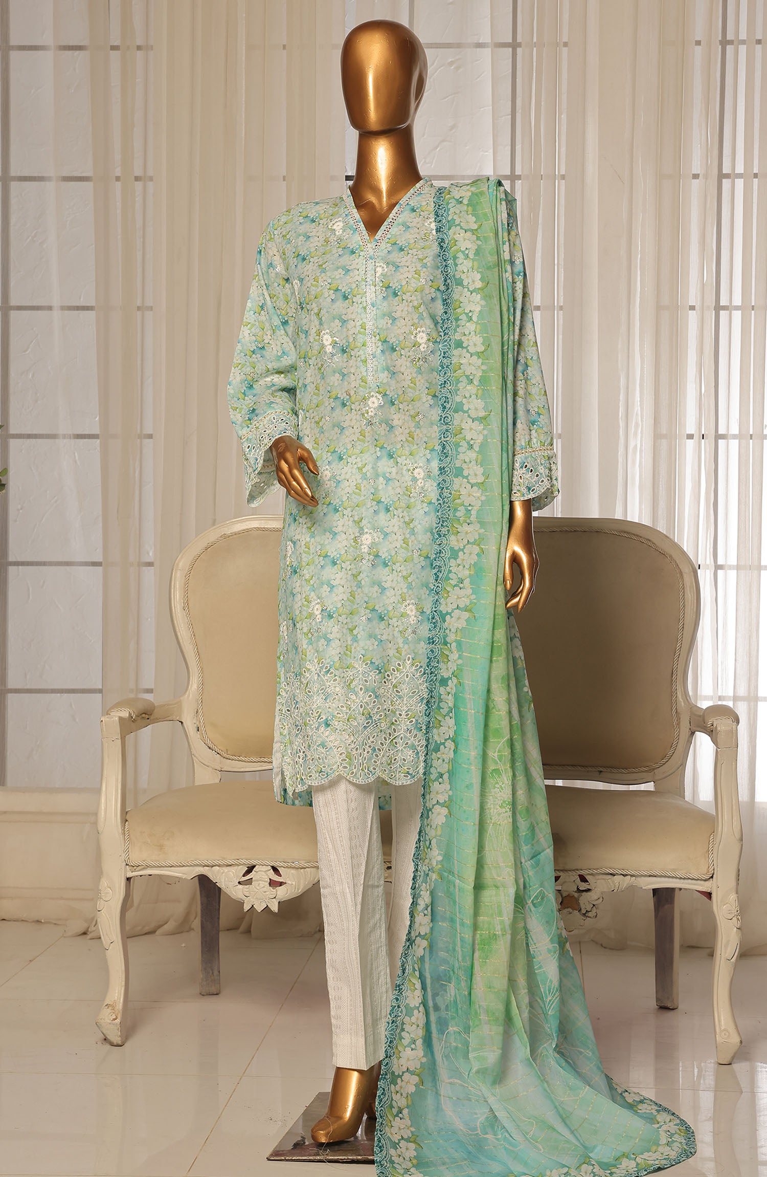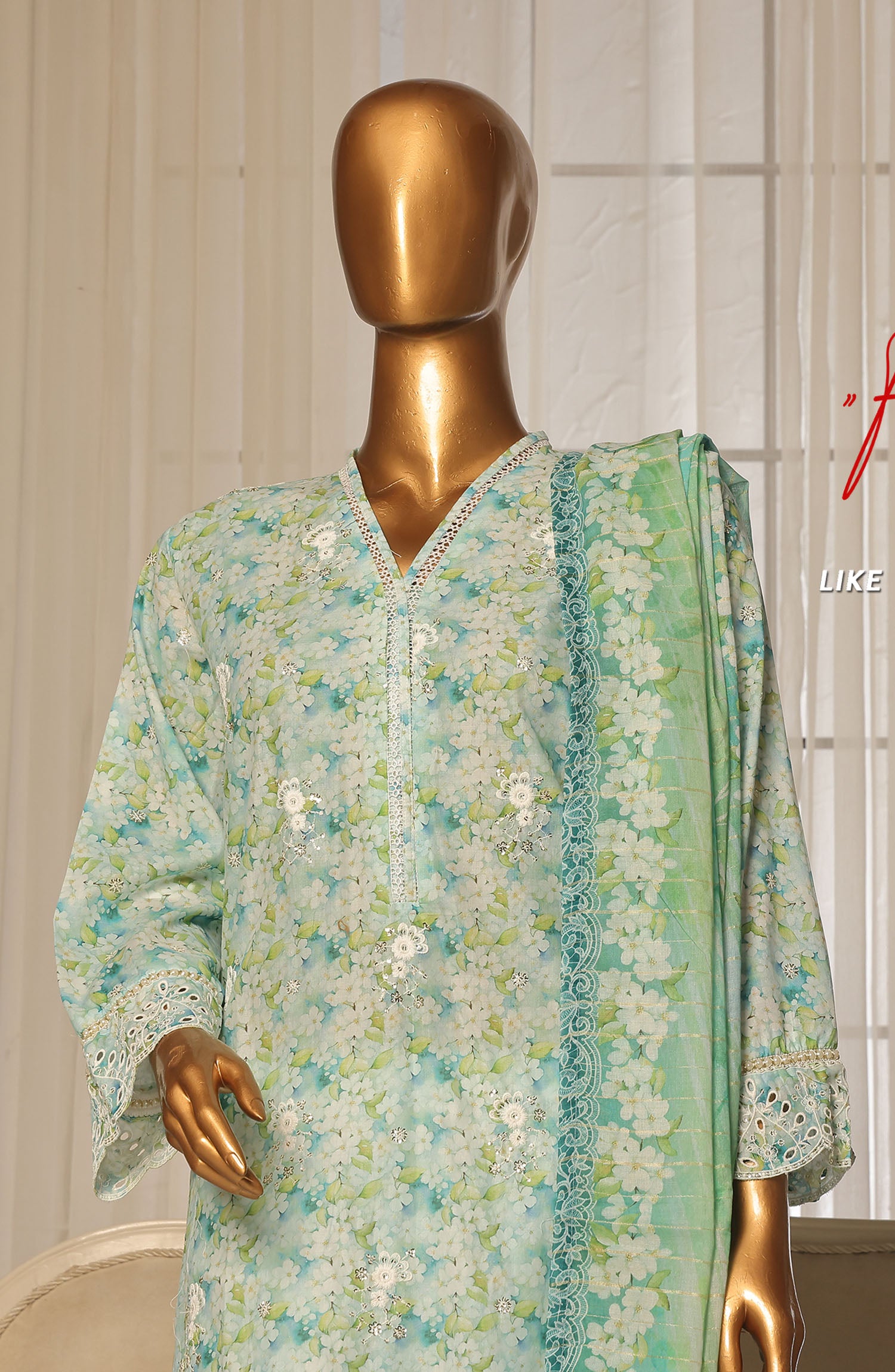 Bin Saeed Chikankari Stitched 3 Piece Suit - D-04 - BS25WNWC - Green - Summer Collection