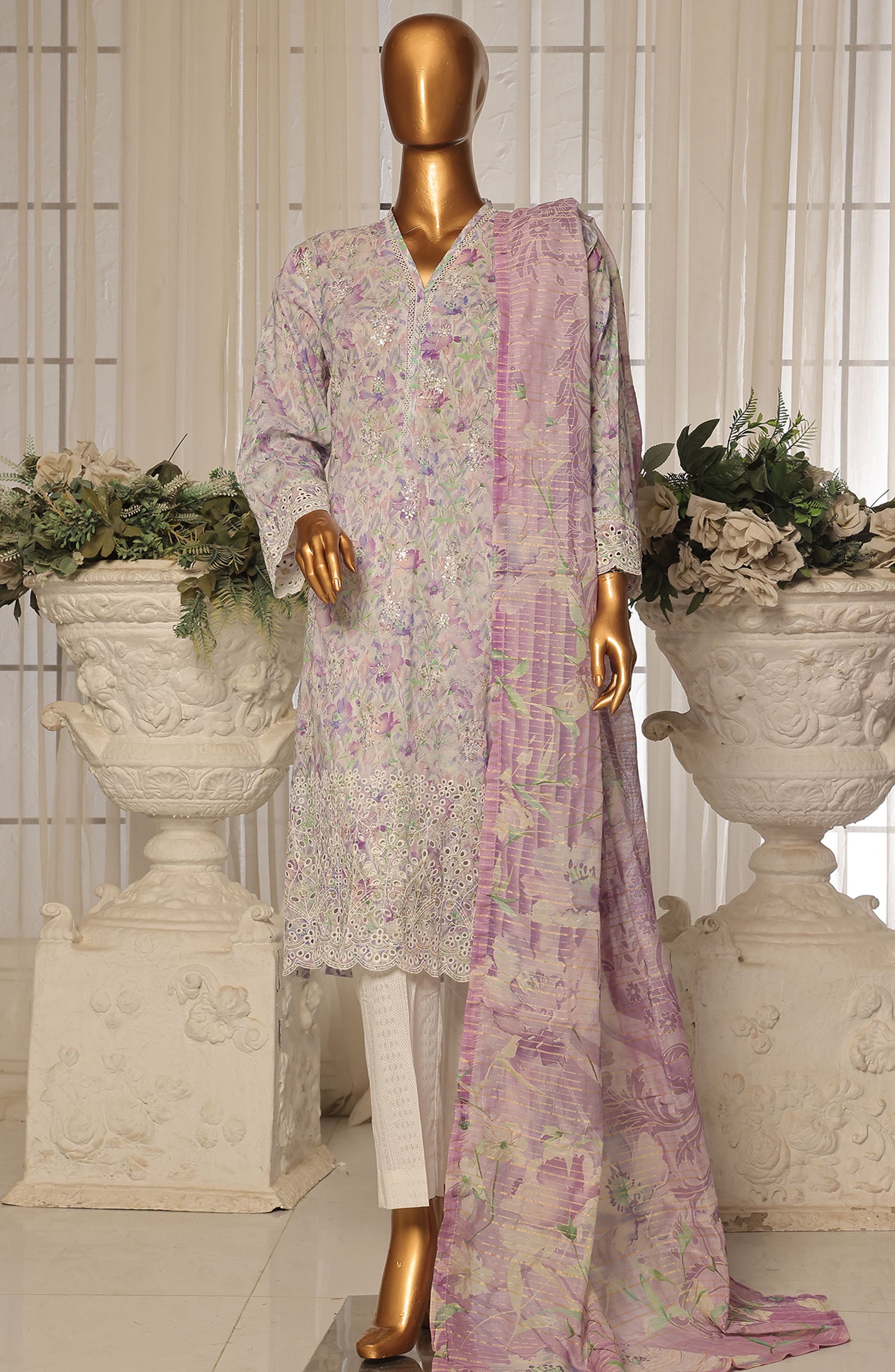 Home Bin Saeed Chikankari Stitched 3 Piece Suit - D-06 - BS25WNWC - Purple - Summer Collection