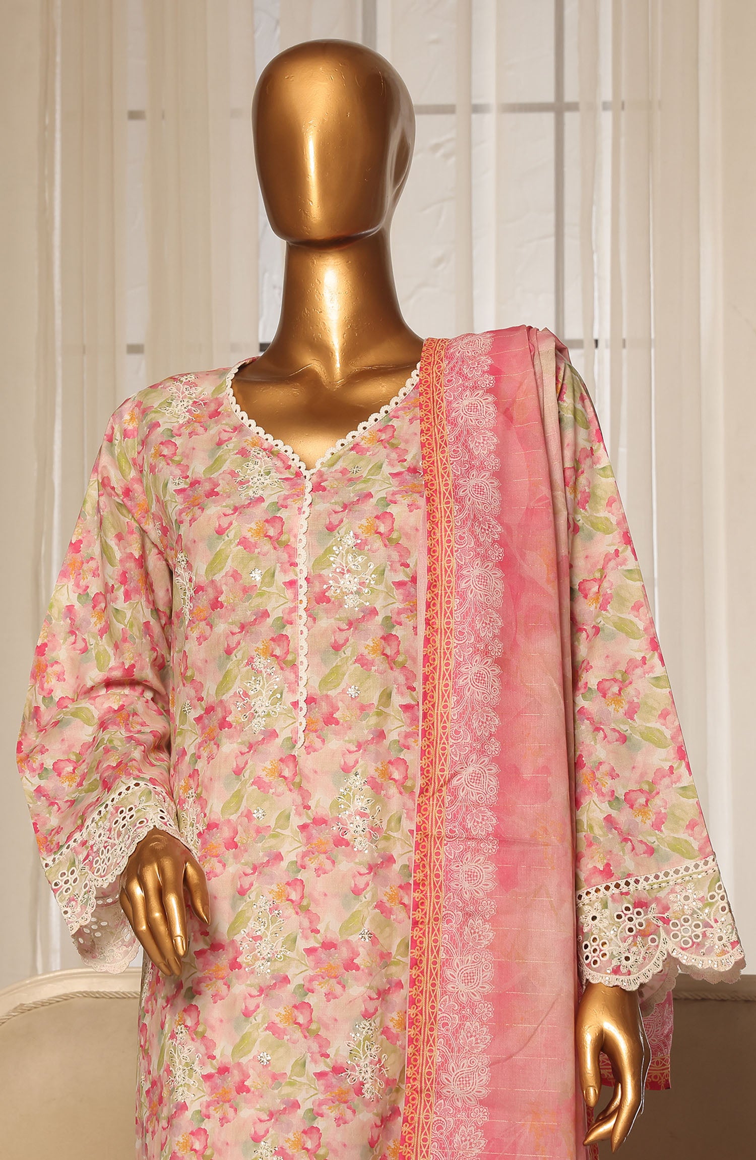 Home Bin Saeed Chikankari Stitched 3 Piece Suit - D-08 - BS25WNWC - Pink - Summer Collection