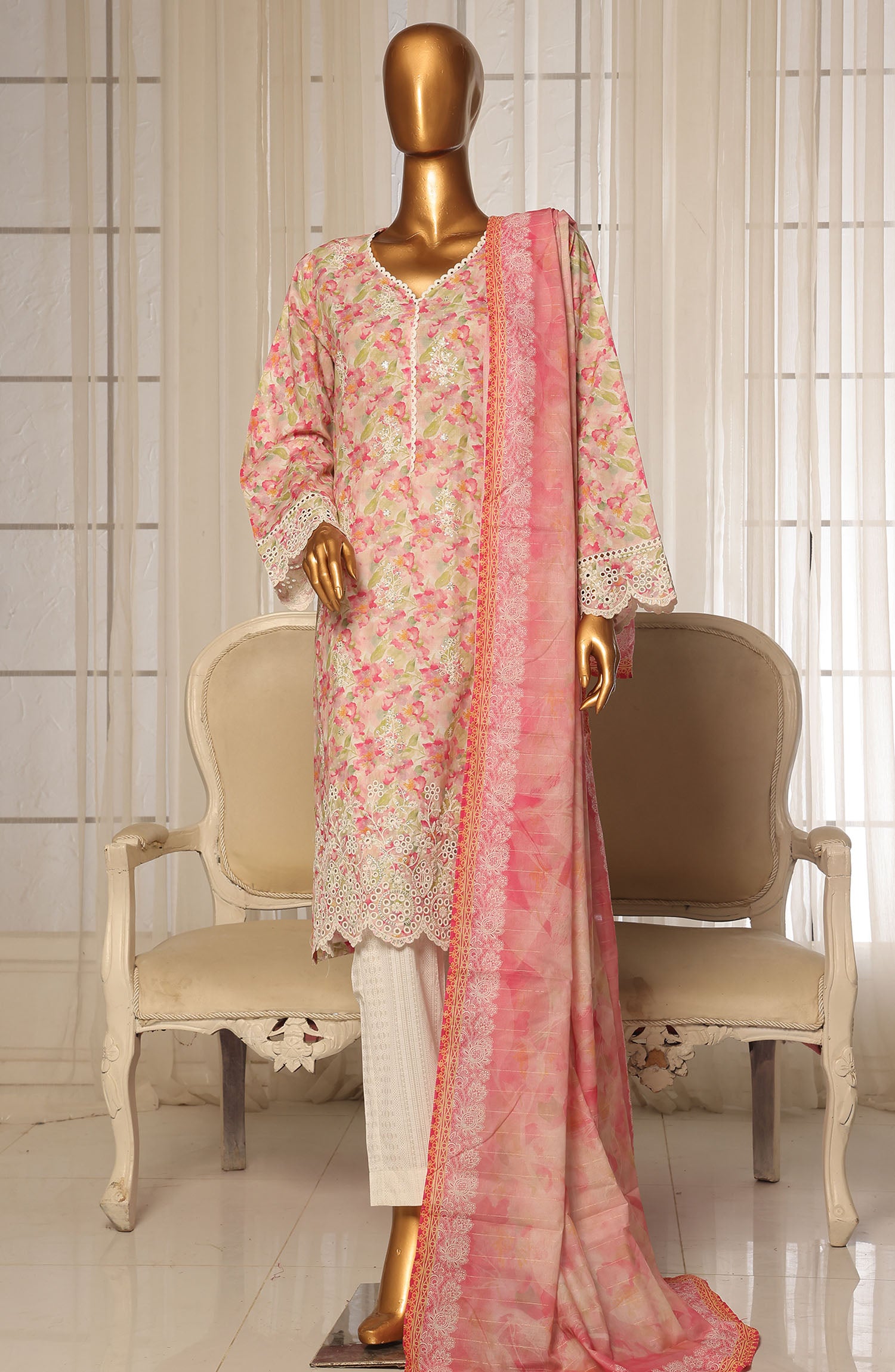 Bin Saeed Chikankari Stitched 3 Piece Suit - D-08 - BS25WNWC - Pink - Summer Collection