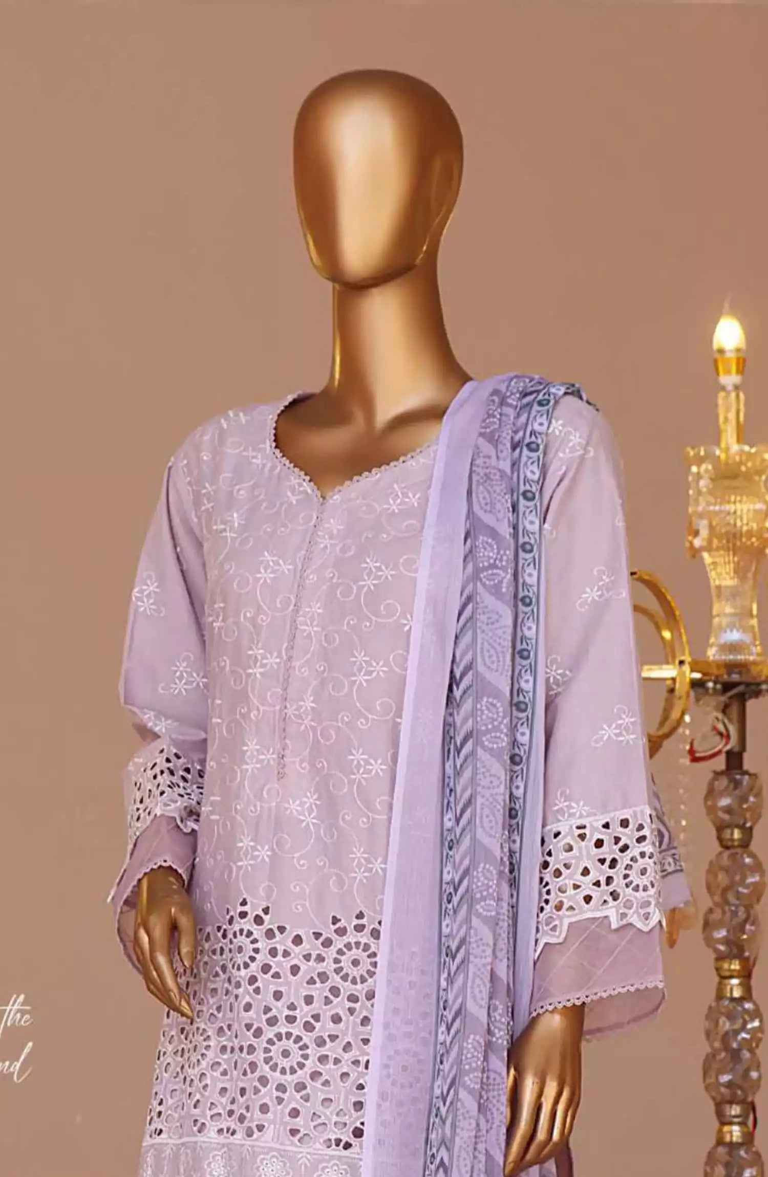 Bin Saeed Cotton Luxury Embroidered with Chiffon Dupatta 3pc Collection - Design 10