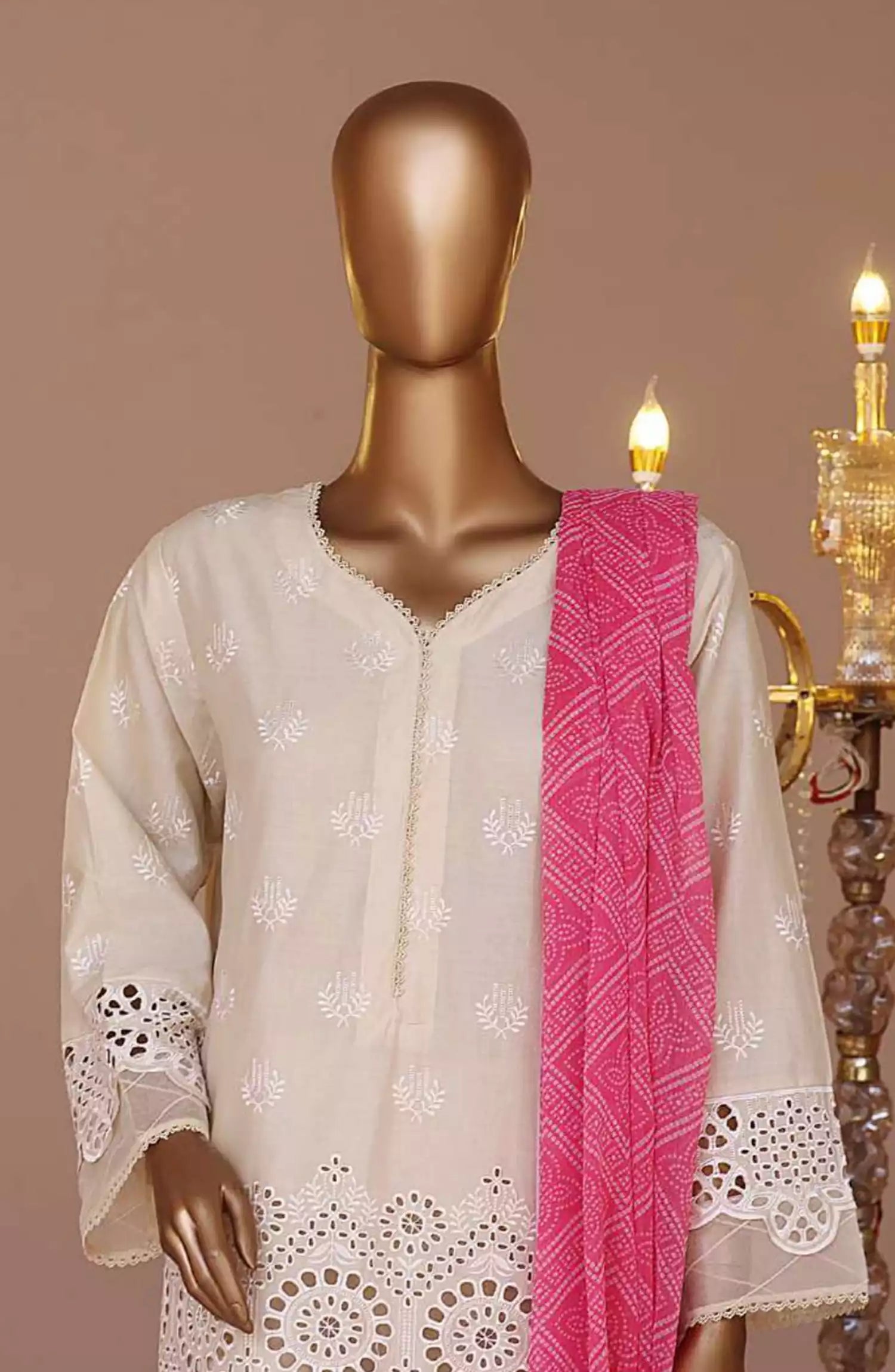 Bin Saeed Cotton Luxury Embroidered with Chiffon Dupatta 3pc Collection has been styled in the image for photography and illustrative purposes.