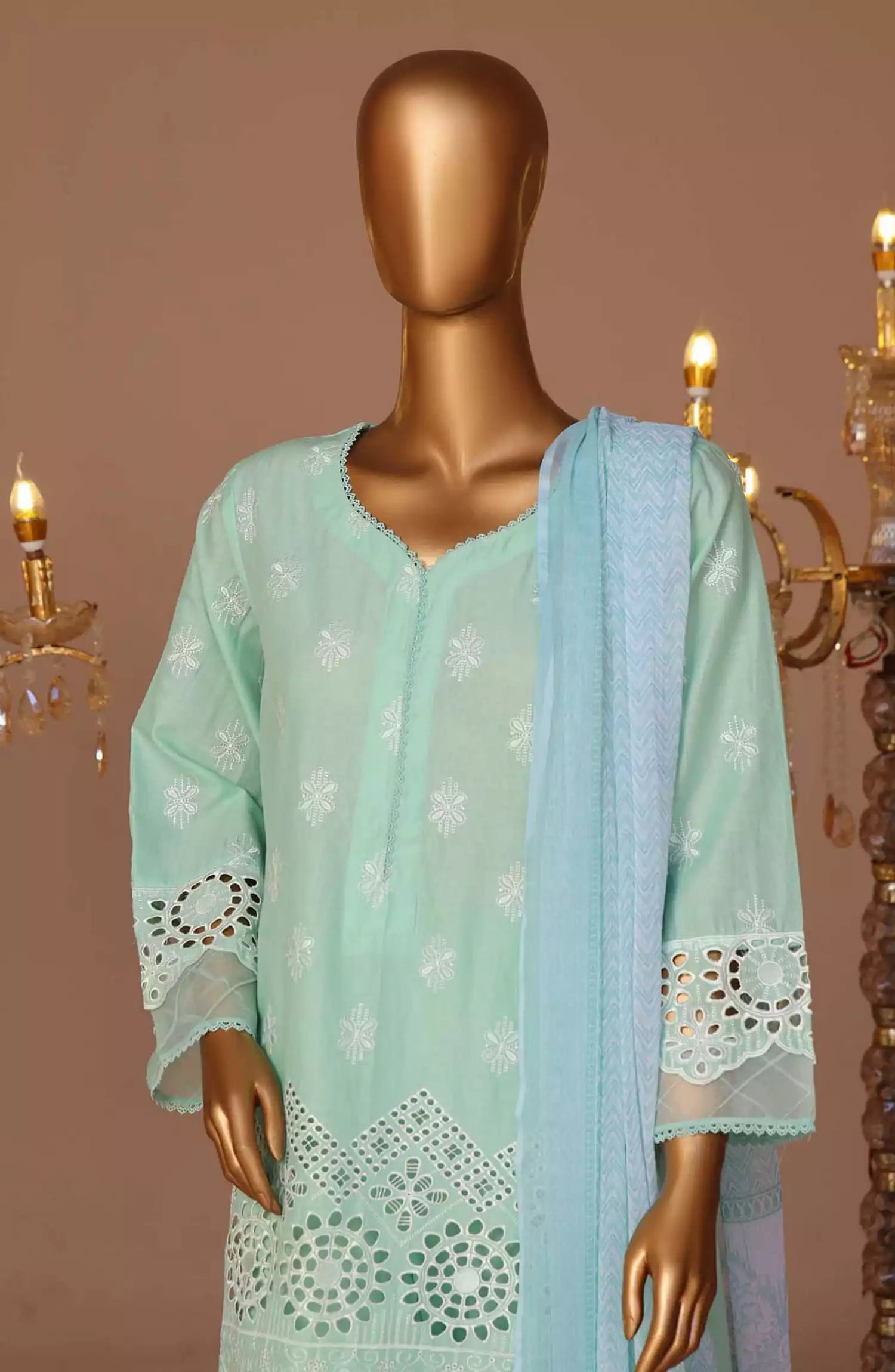 Home Bin Saeed Cotton Luxury Embroidered with Chiffon Dupatta 3pc Collection - Design 03