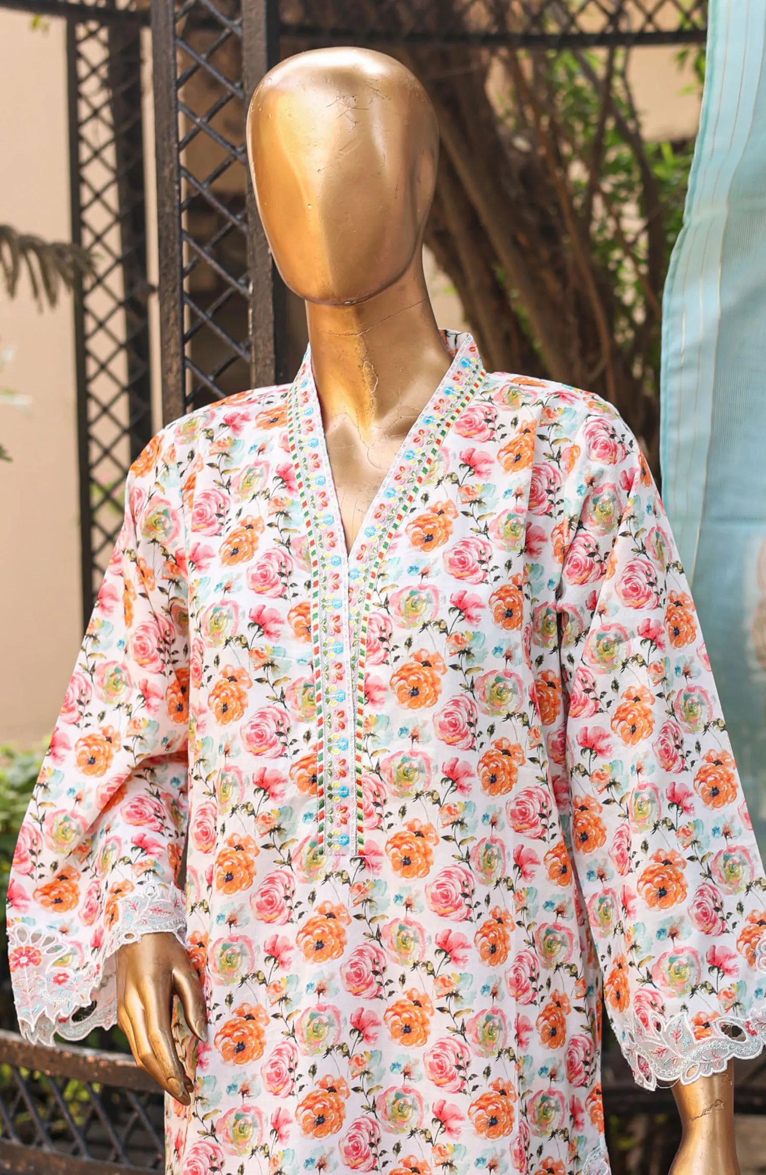 Exclusive printed and Cutwork Embroidered stitched lawn suit with printed chiffon Dupatta