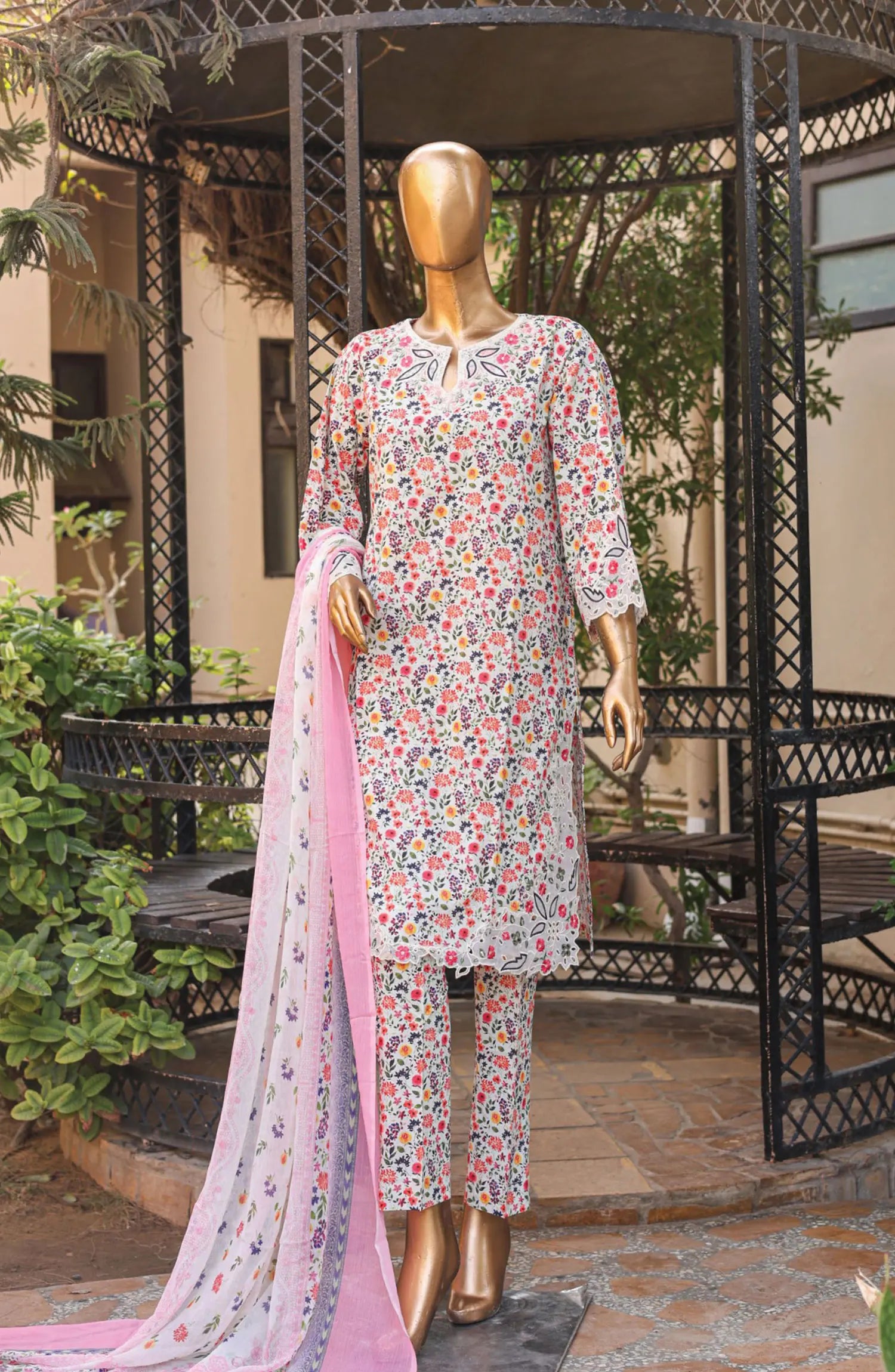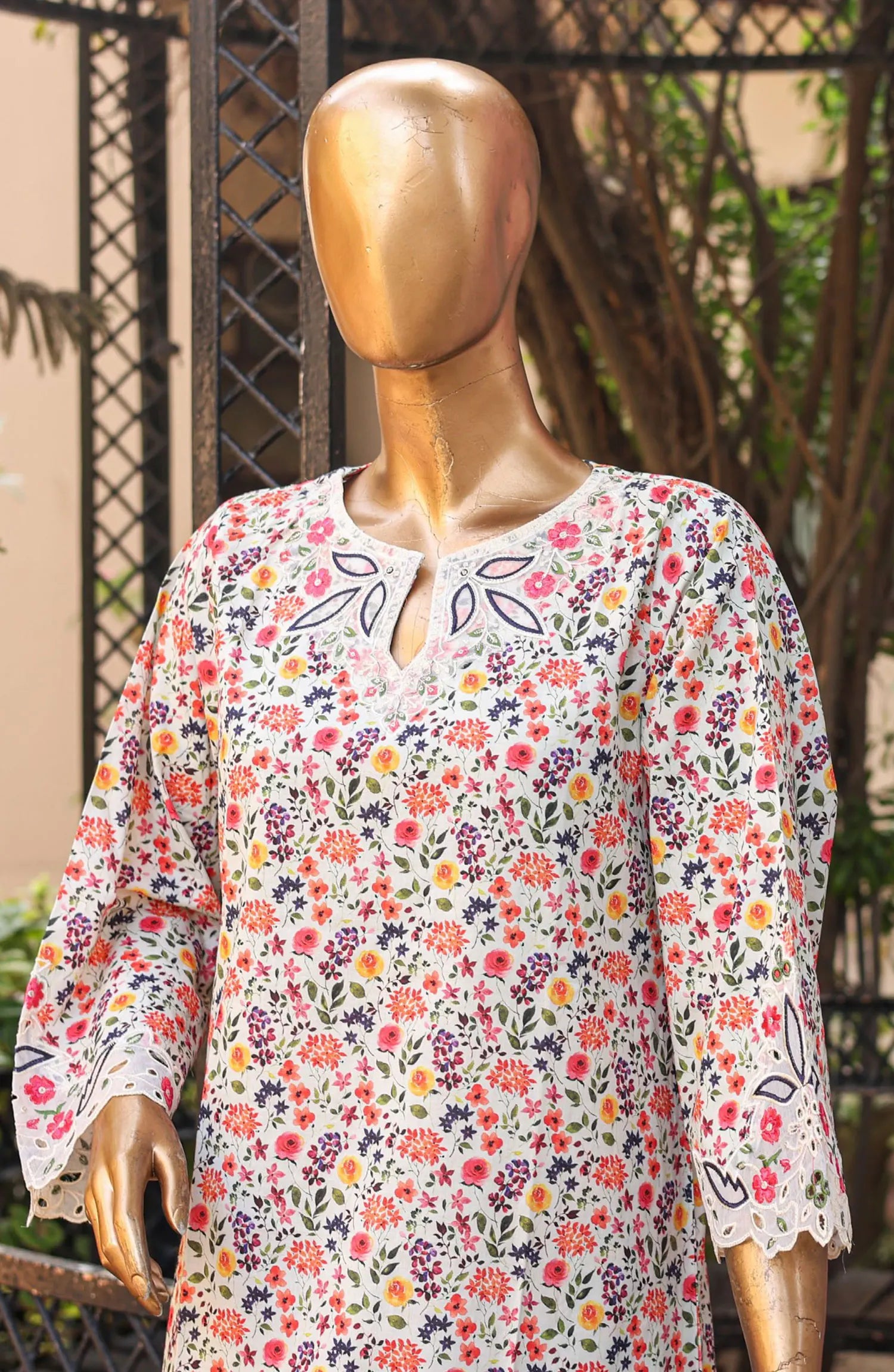 Exclusive printed and Cutwork Embroidered stitched lawn suit with printed chiffon Dupatta