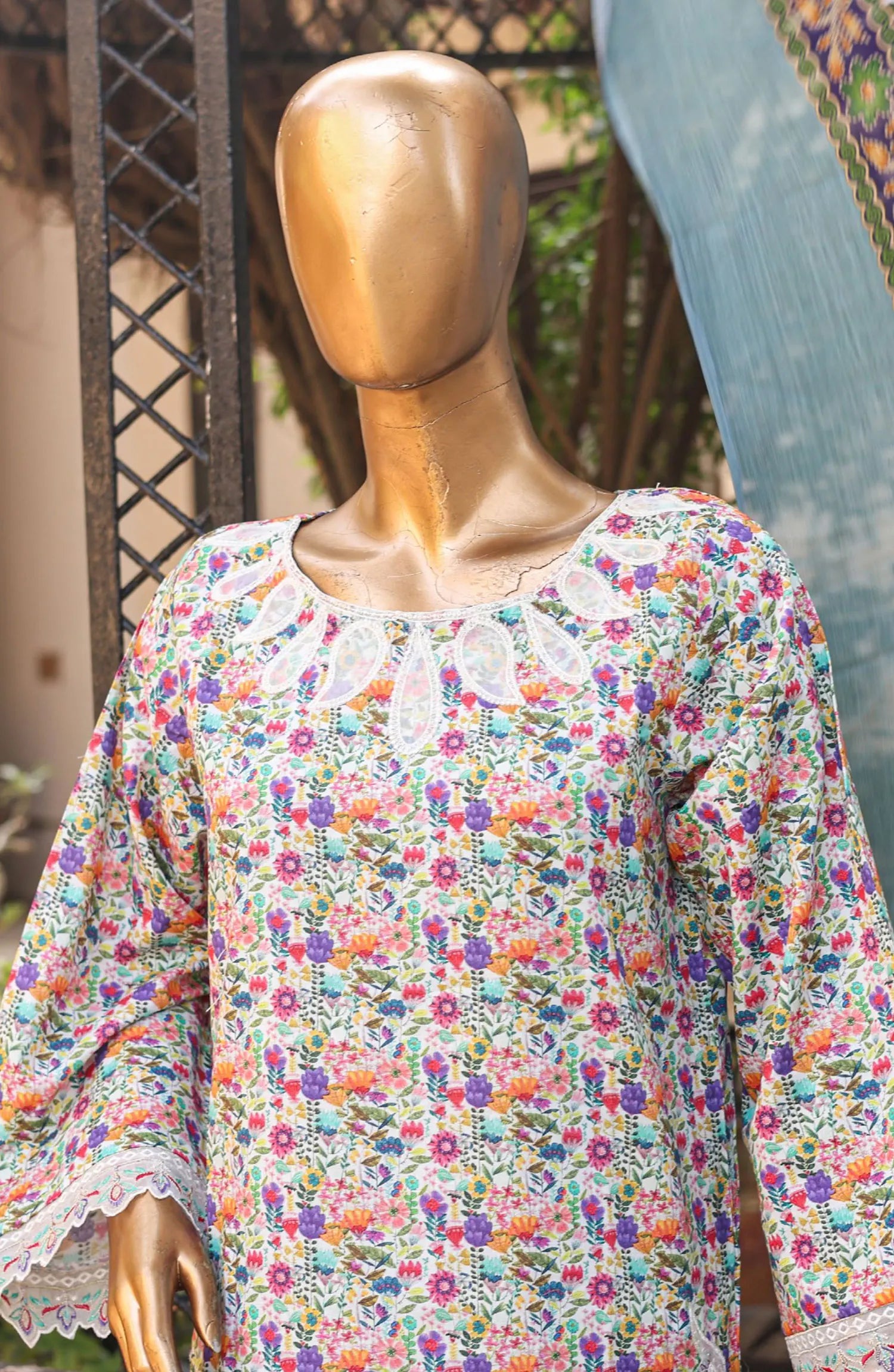 Exclusive printed and Cutwork Embroidered stitched lawn suit with printed chiffon Dupatta