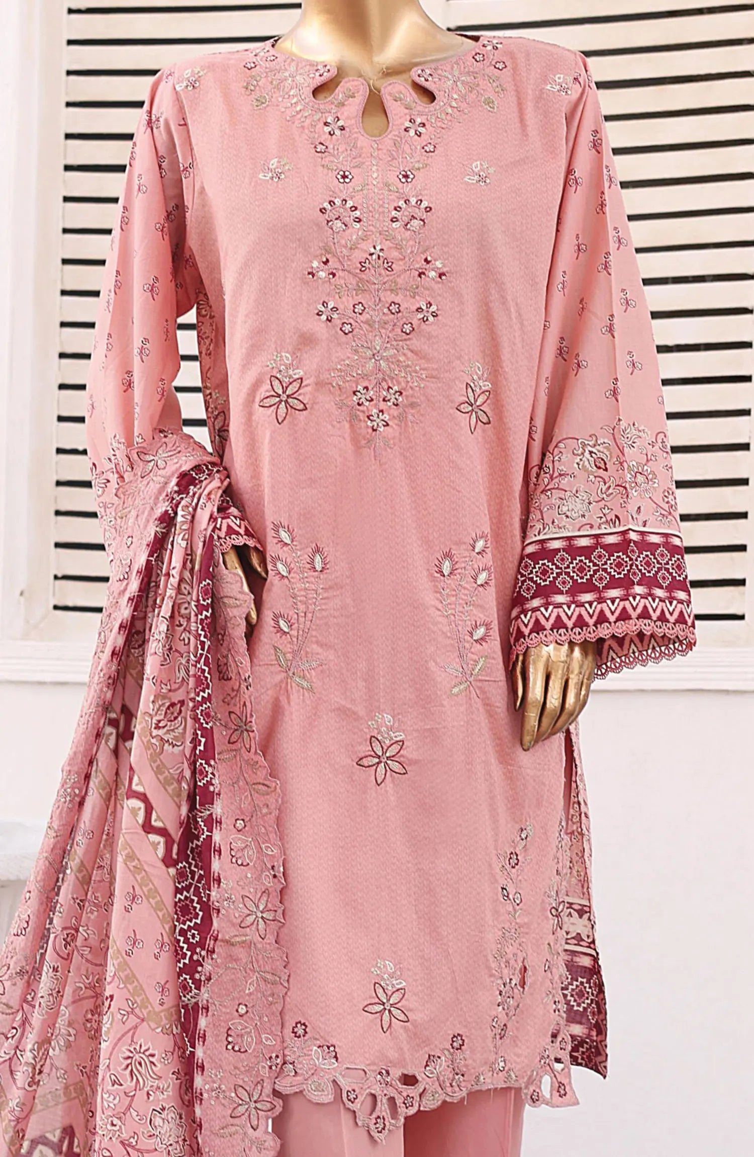 Modest Embroidered Khaddar Stitched 3 Piece Suit - 10040-Pnk - MOD25WNT - Pink - Winter Collection