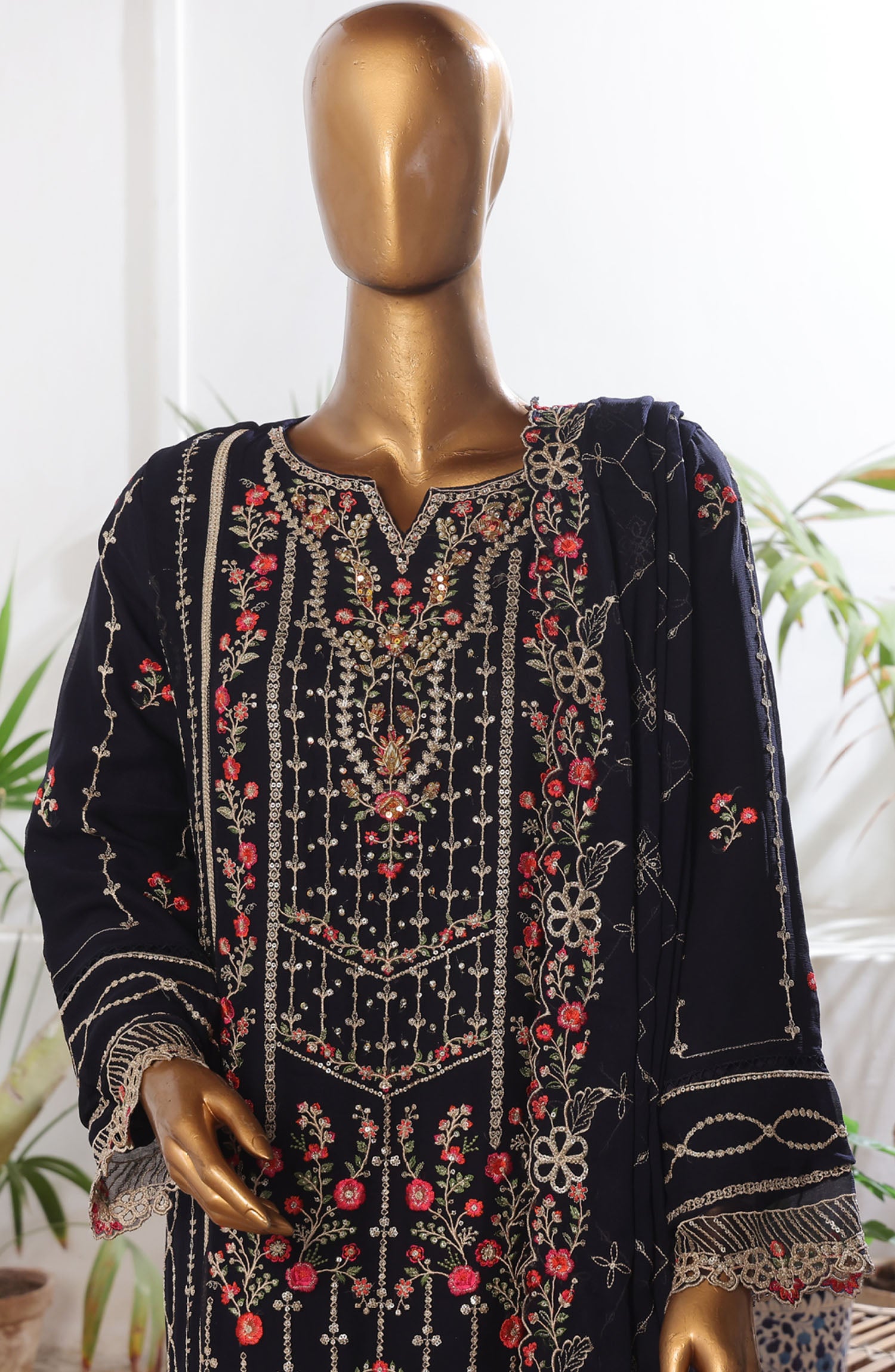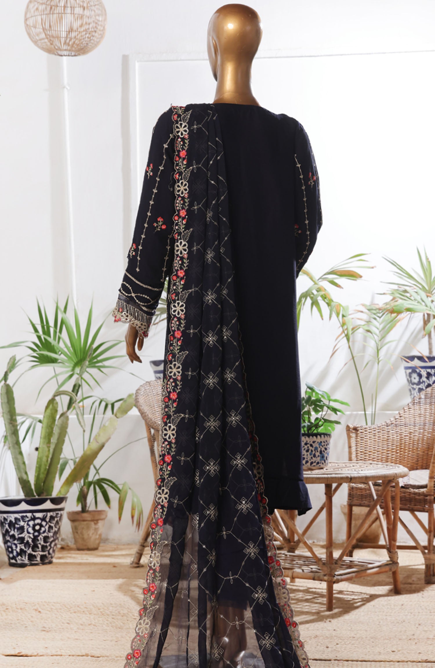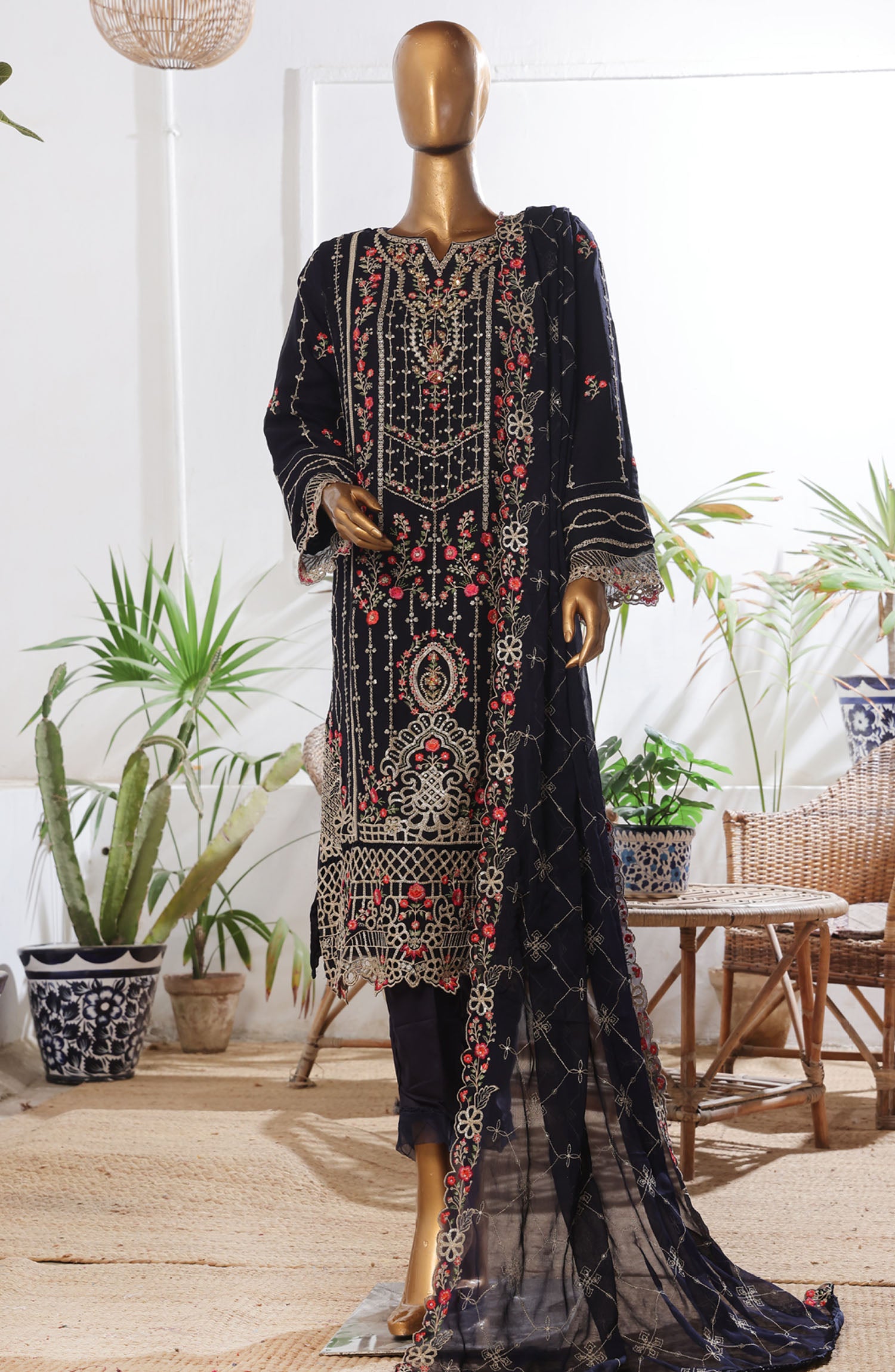 Home Bin Saeed Embroidered Chiffon Stitched 3 Piece Suit - D-03 - BS25L3PCCC - Black - Festive Collection