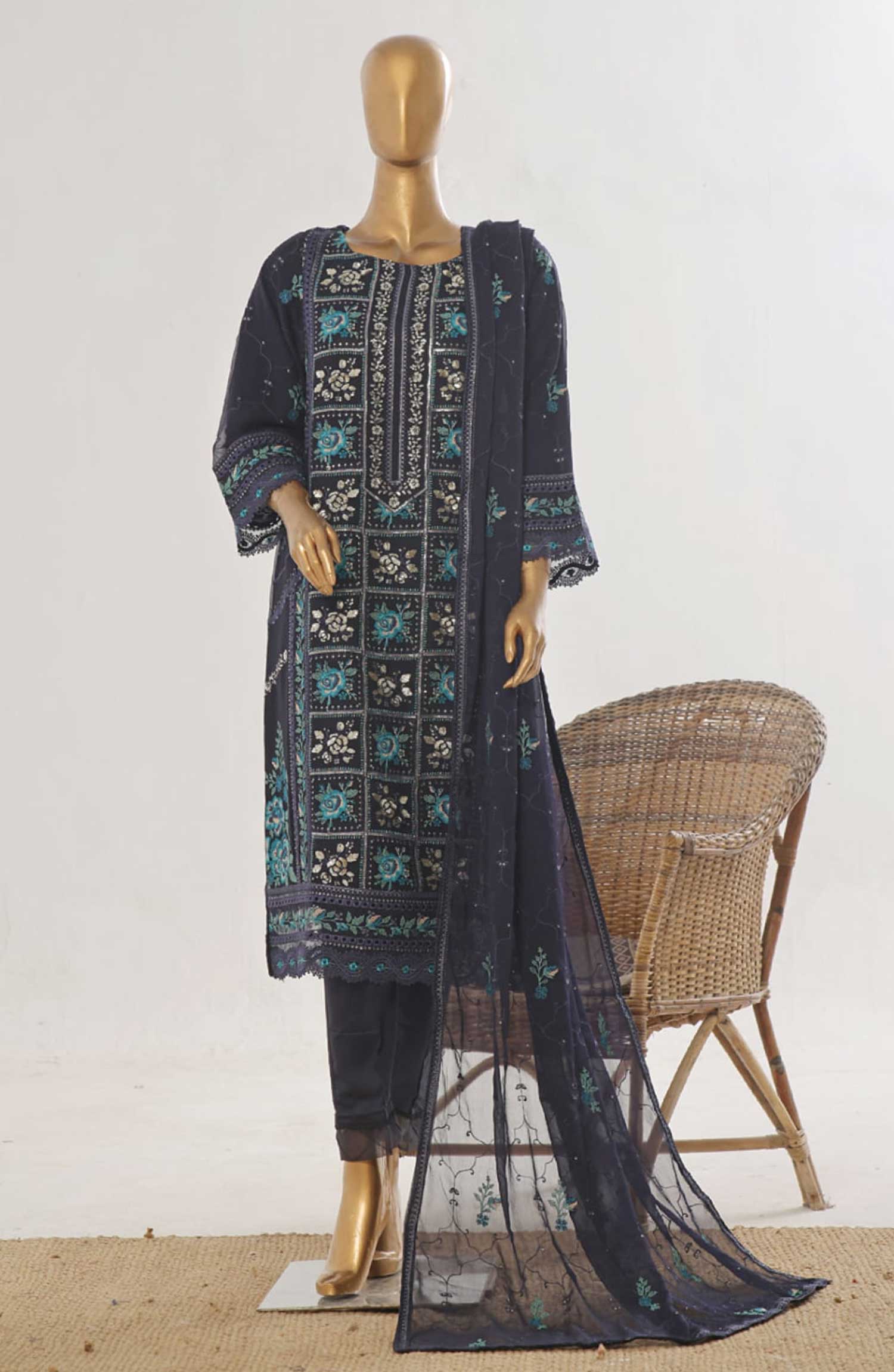 Home Bin Saeed Embroidered Chiffon Unstitched 3 Piece - D-04 - BS25EC - Dark Grey - Festive Collection