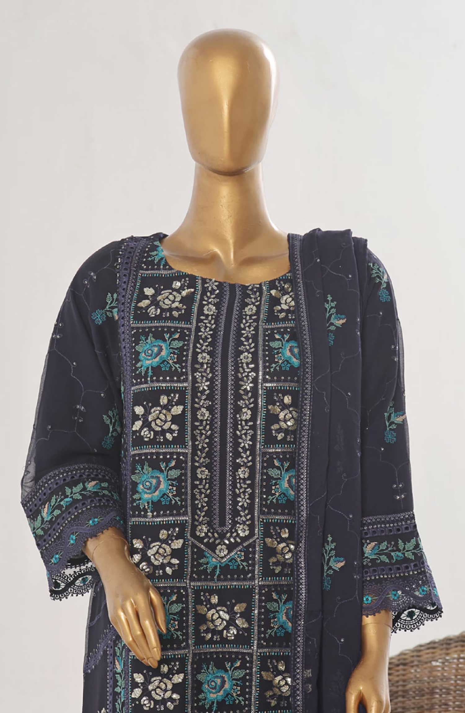 Bin Saeed Embroidered Chiffon Unstitched 3 Piece - D-04 - BS25EC - Dark Grey - Festive Collection