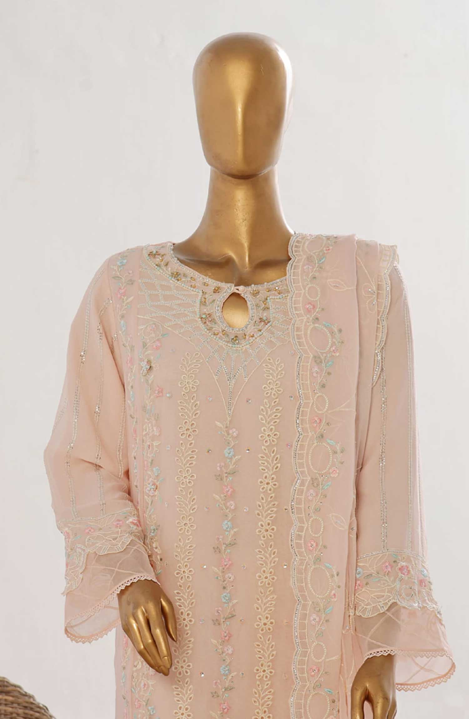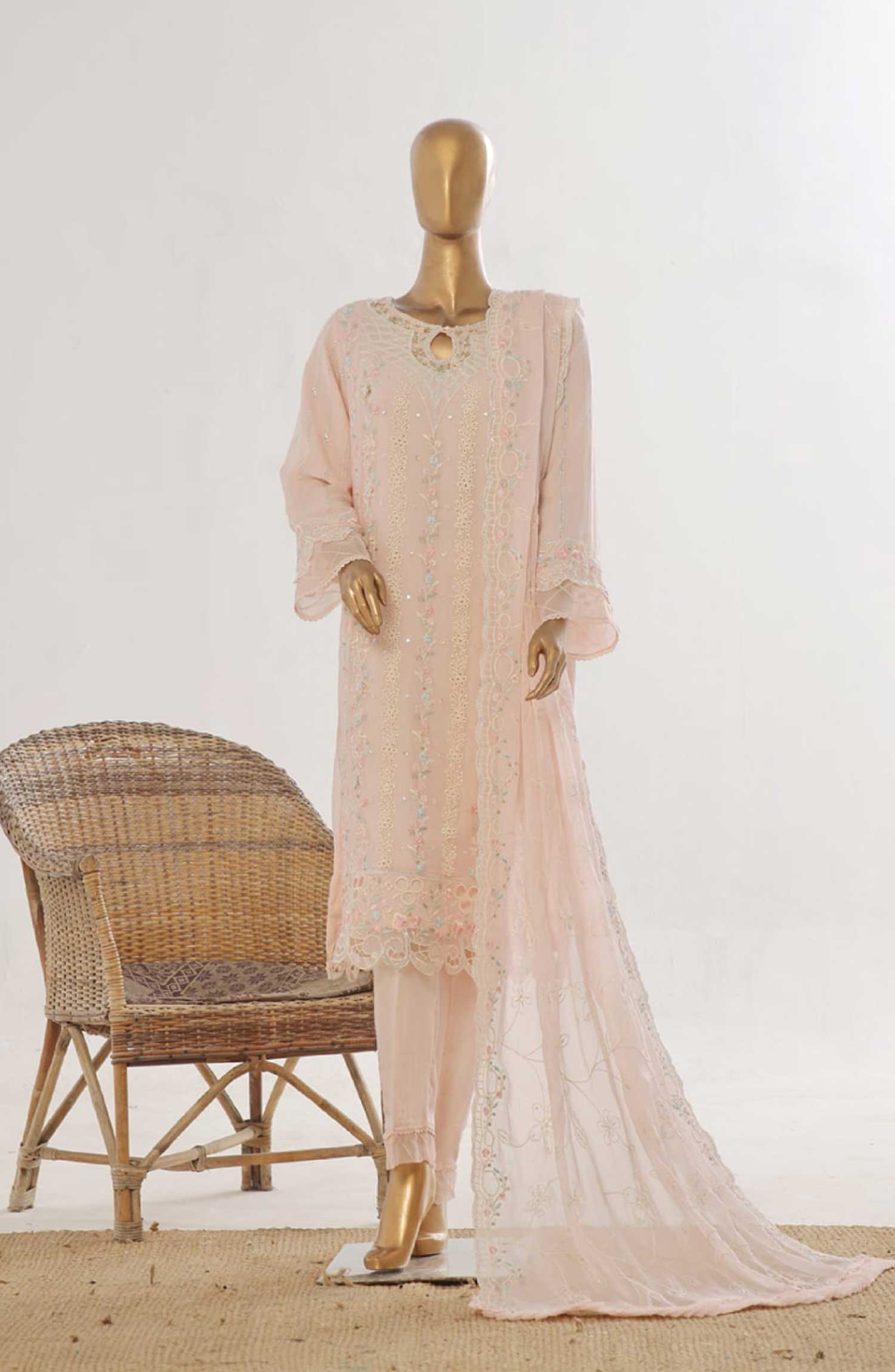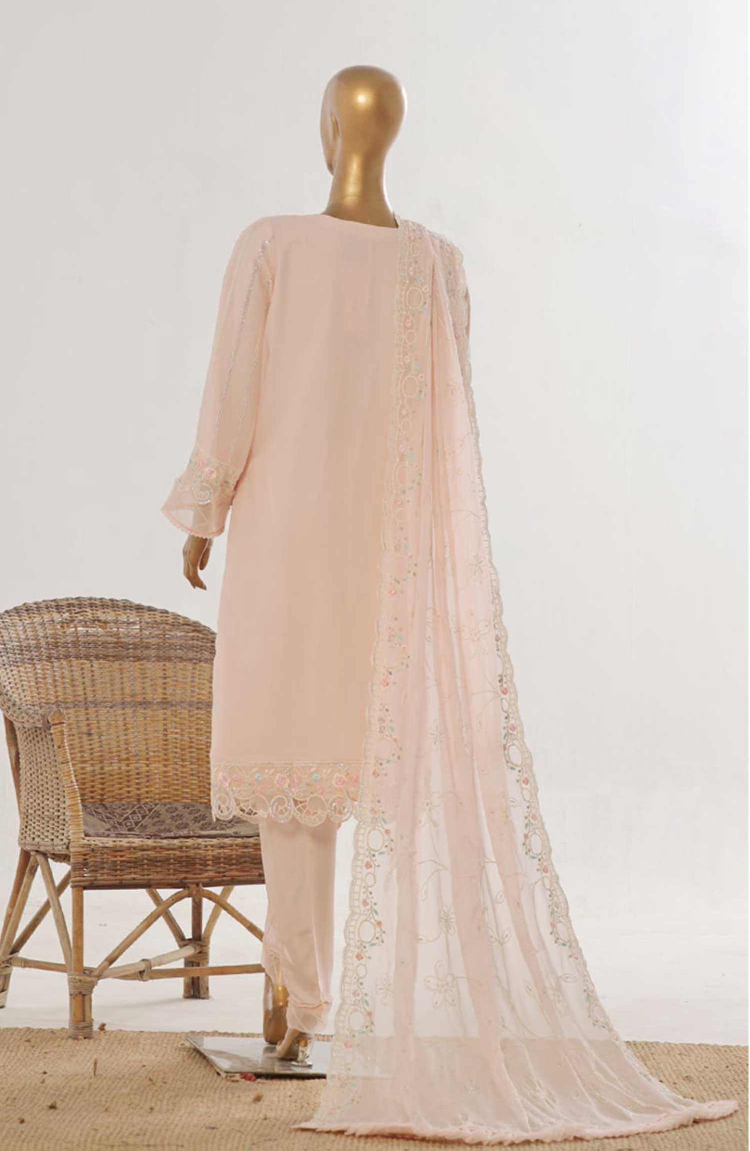 Home Bin Saeed Embroidered Chiffon Unstitched 3 Piece - D-06 - BS25EC - Peach Pink - Festive Collection