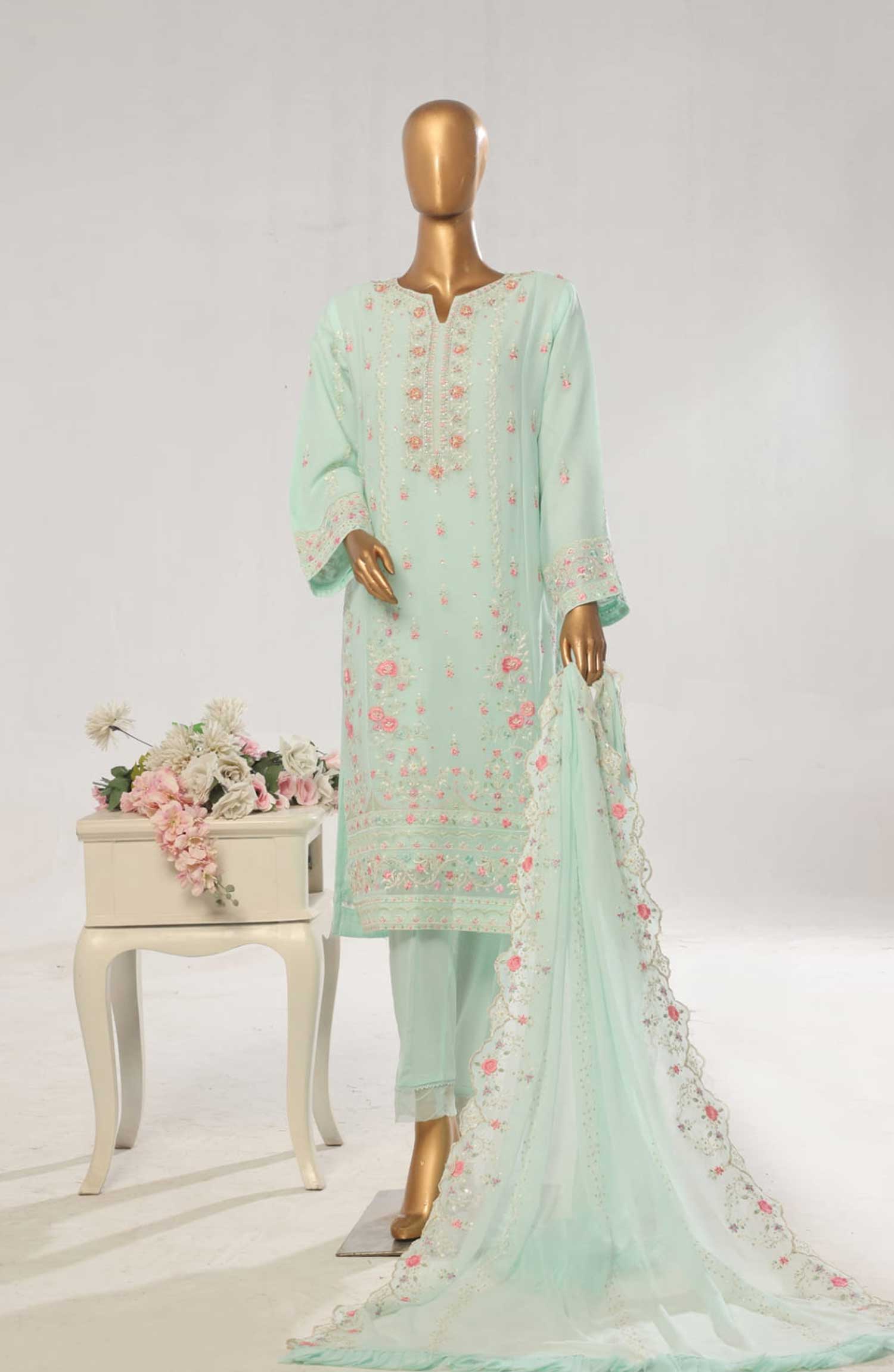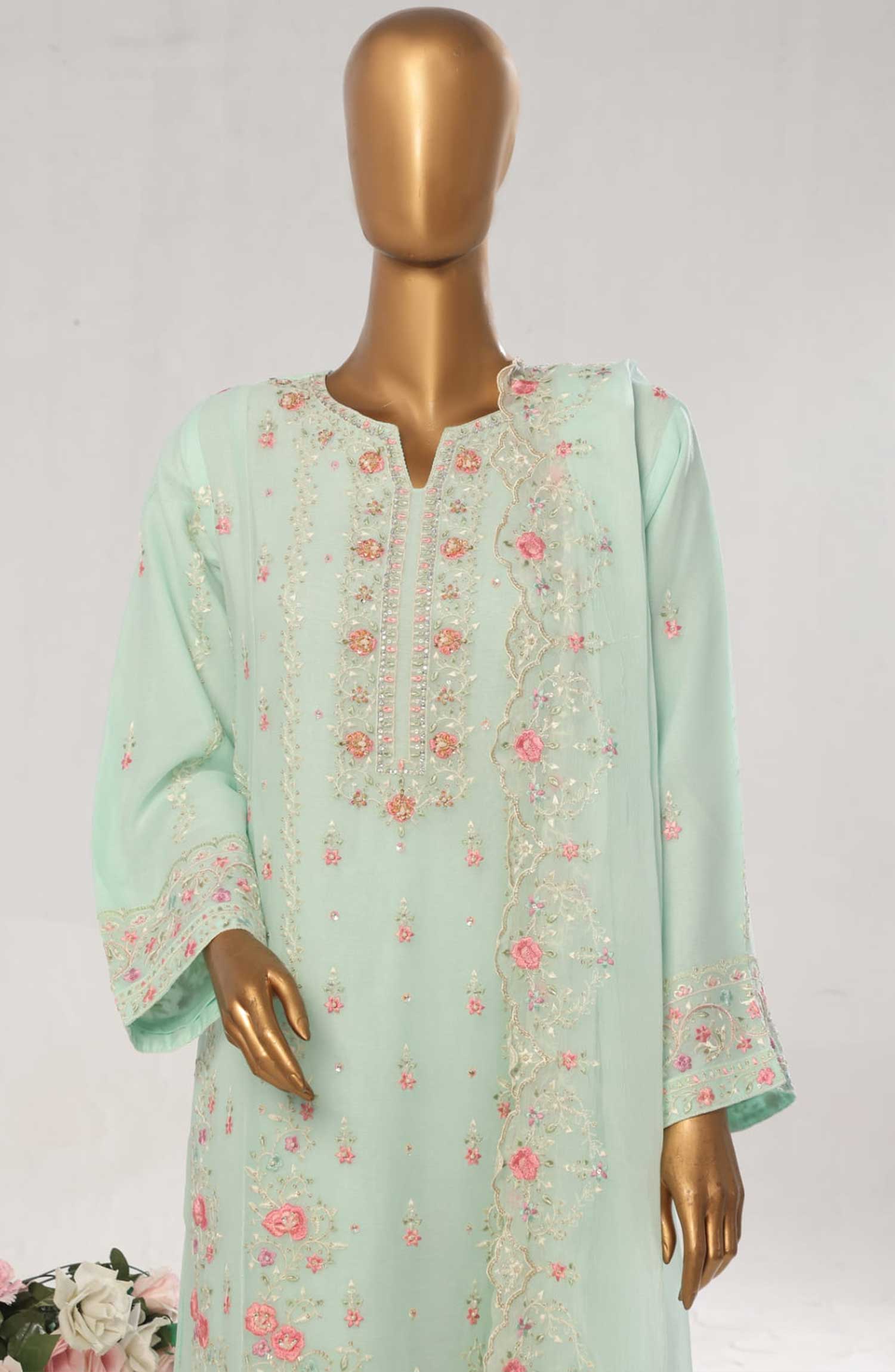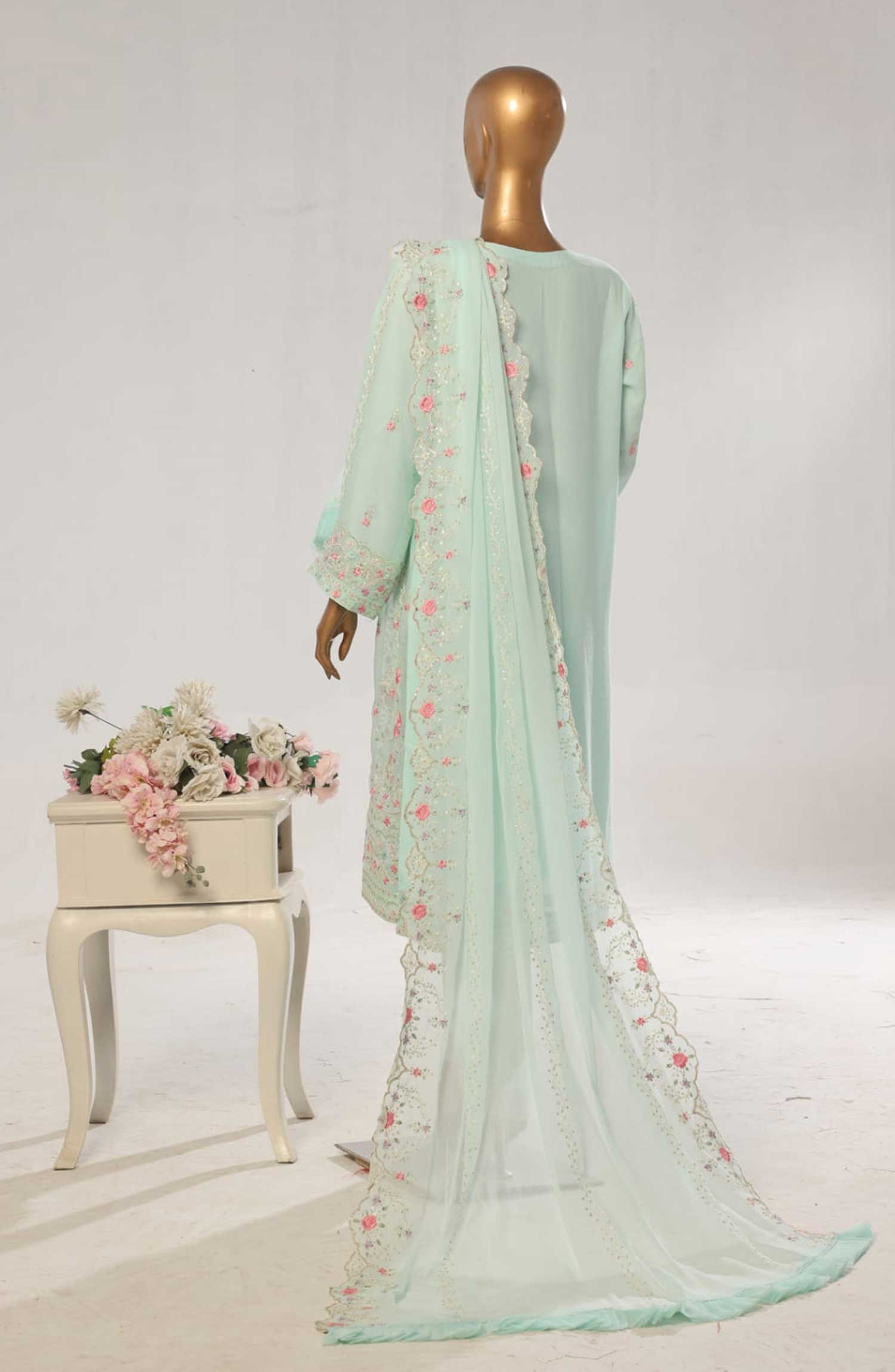 Home Bin Saeed Embroidered Chiffon Unstitched 3 Piece - D-07 - BS25EC - Teal Green - Festive Collection