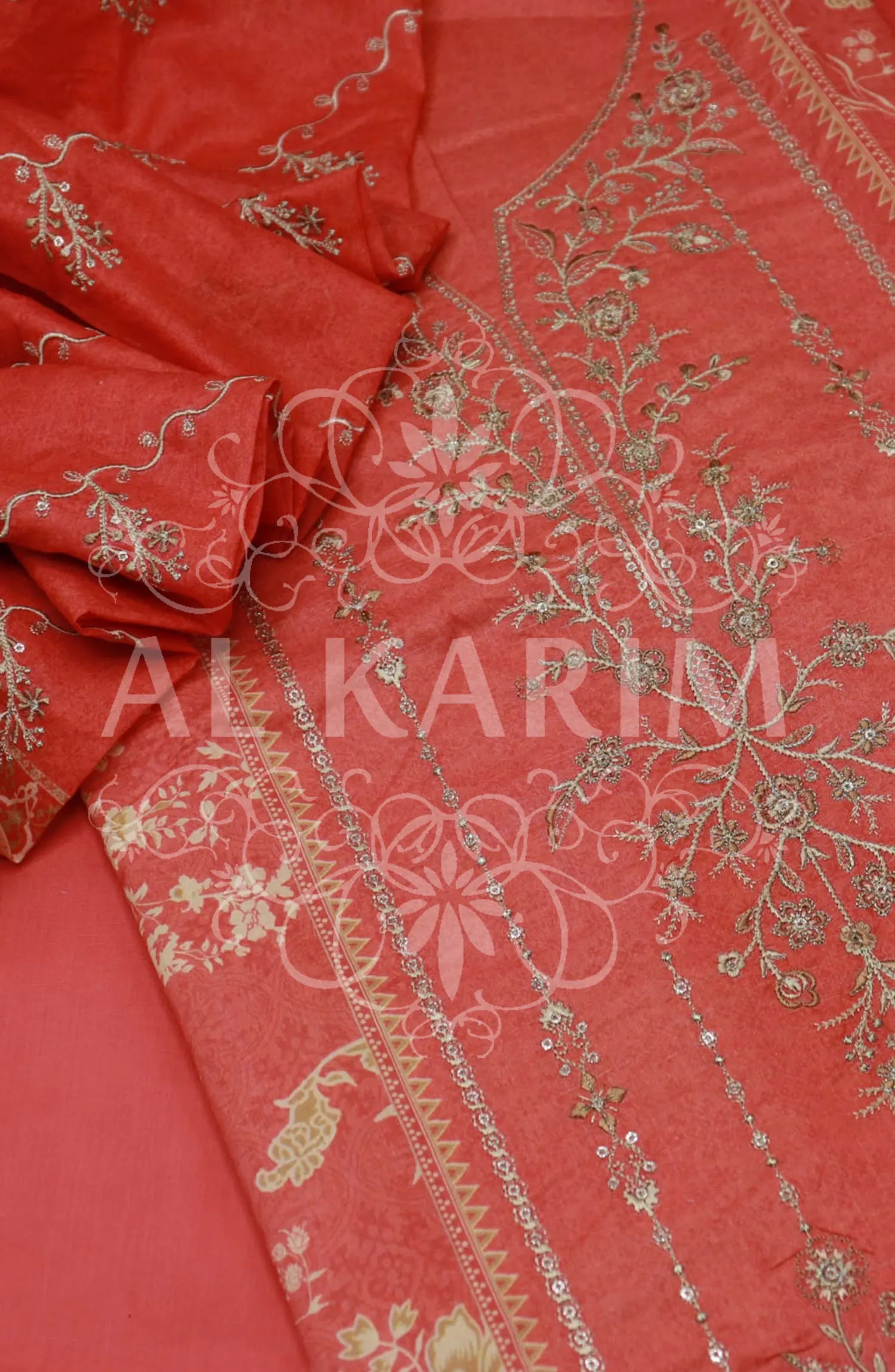 Aarnish by Johra Fancy Embroidered Peach Leather Unstitched 3 Piece Suit - JW-338 - JH25ARNISH - Rust - Winter Collection