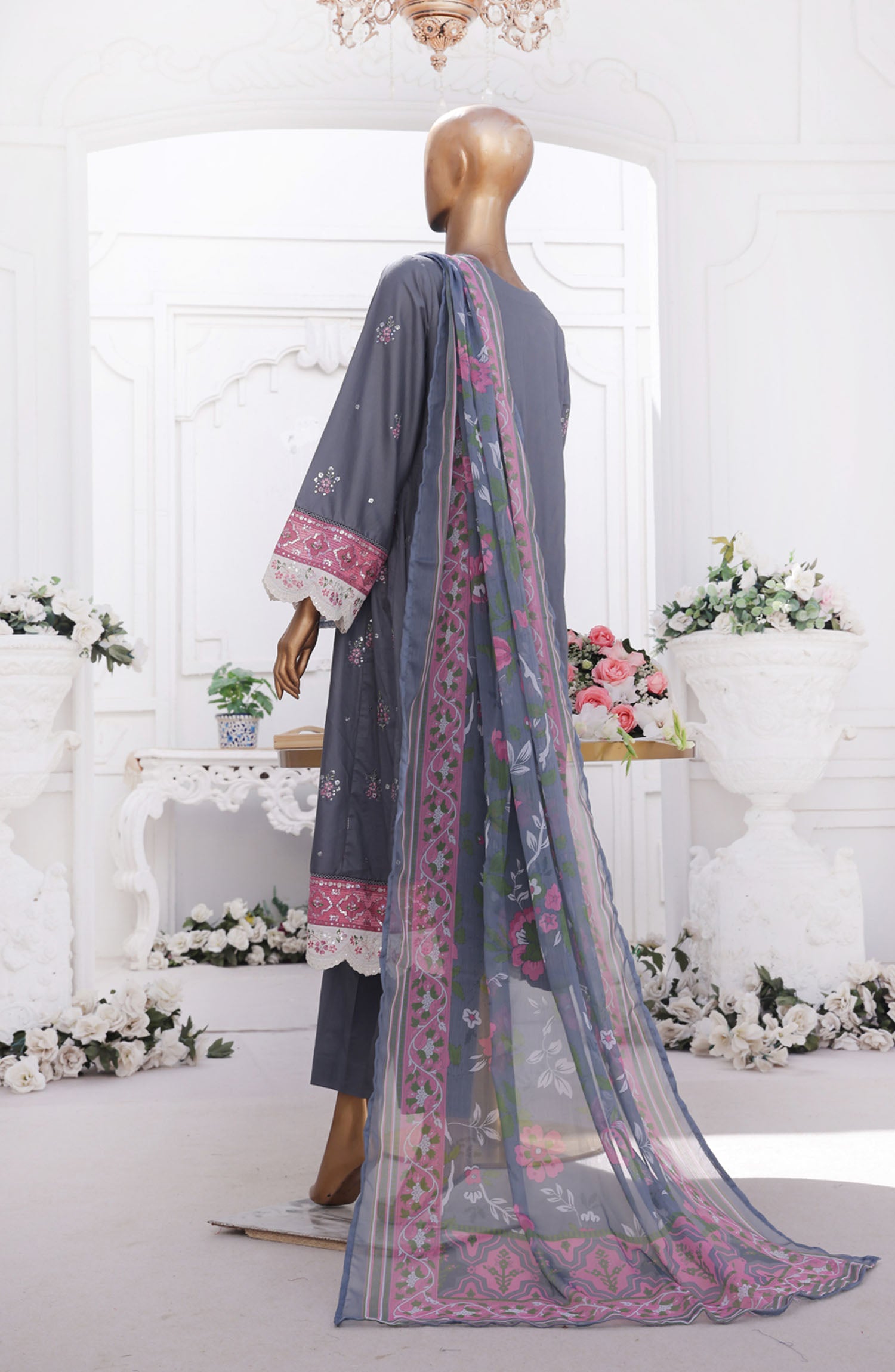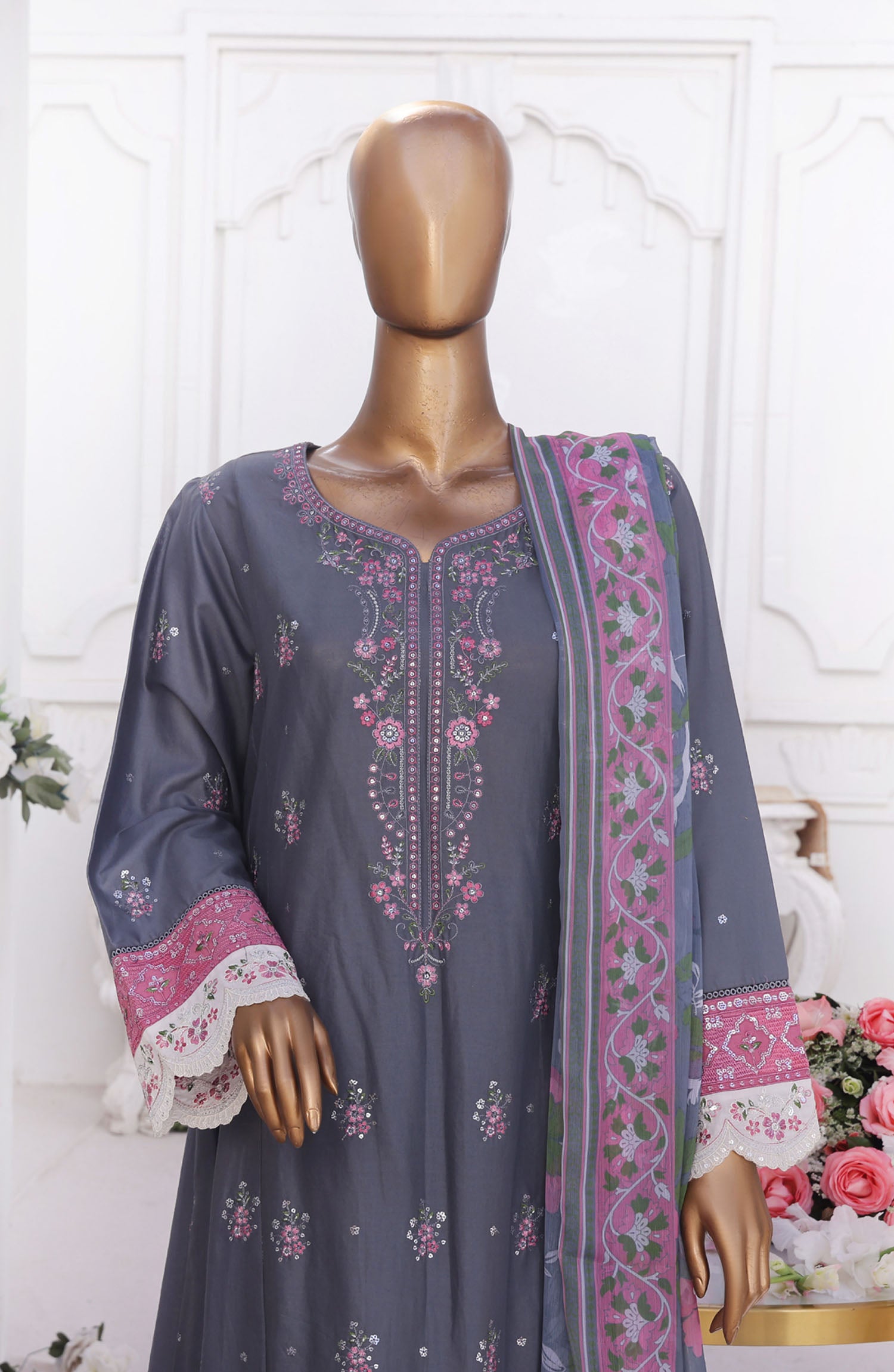 Home Bin Saeed Embroidered Cotton Stitched 3 Piece Frock - D-01 - BS25EEF - Grey - Festive Collection