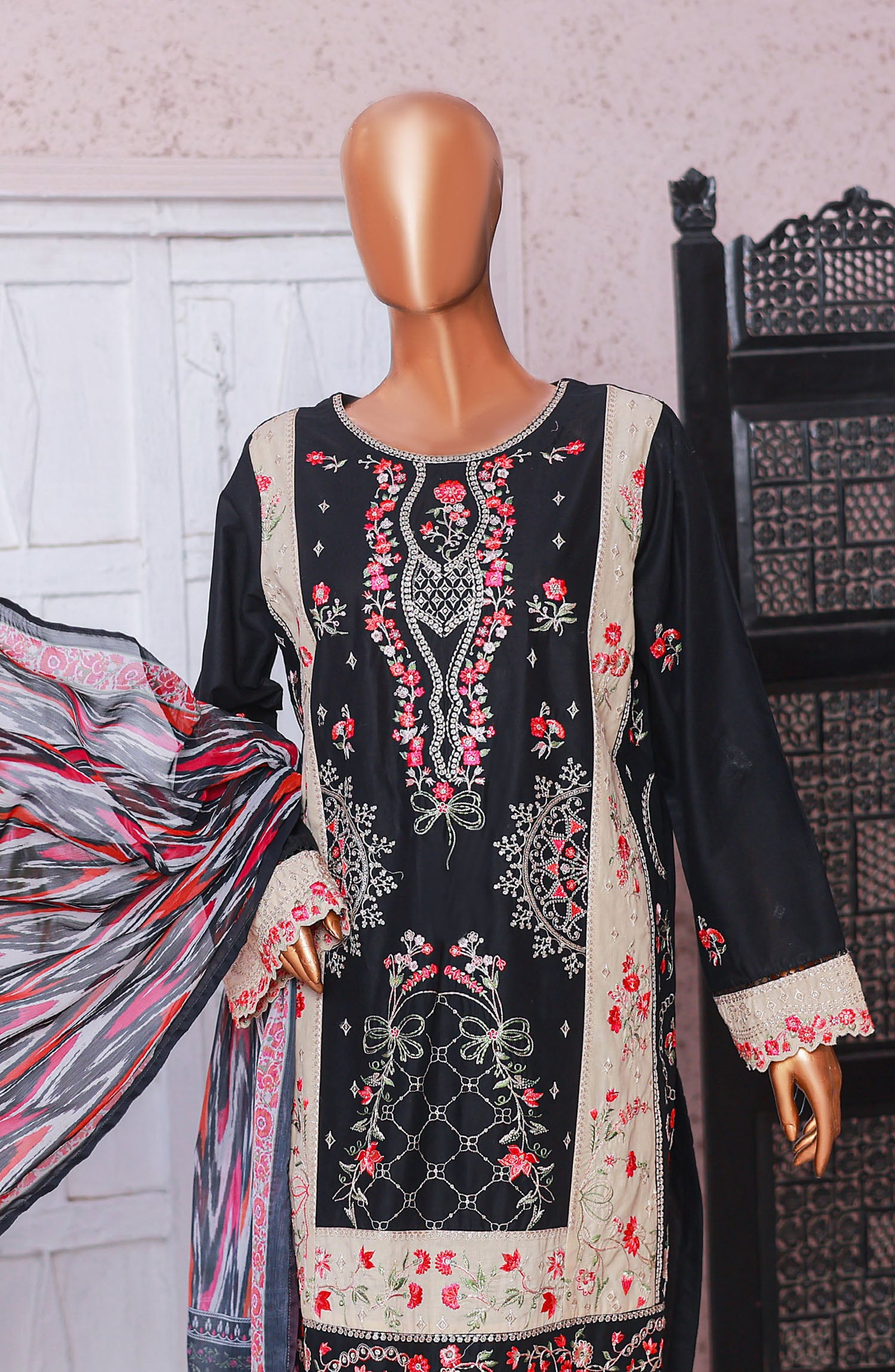 Home Bin Saeed Embroidered Cotton Stitched 3 Piece Suit - D-05 - BS25LPC - Black - Summer Collection