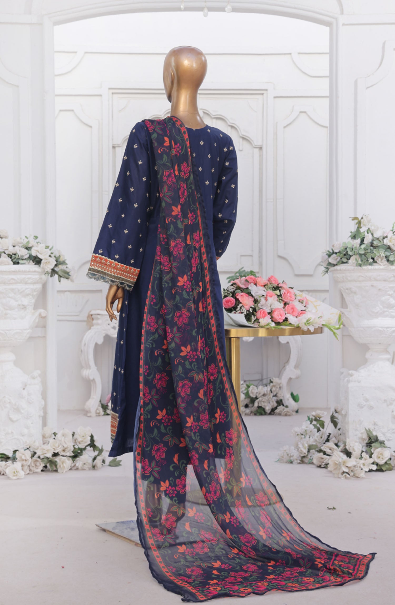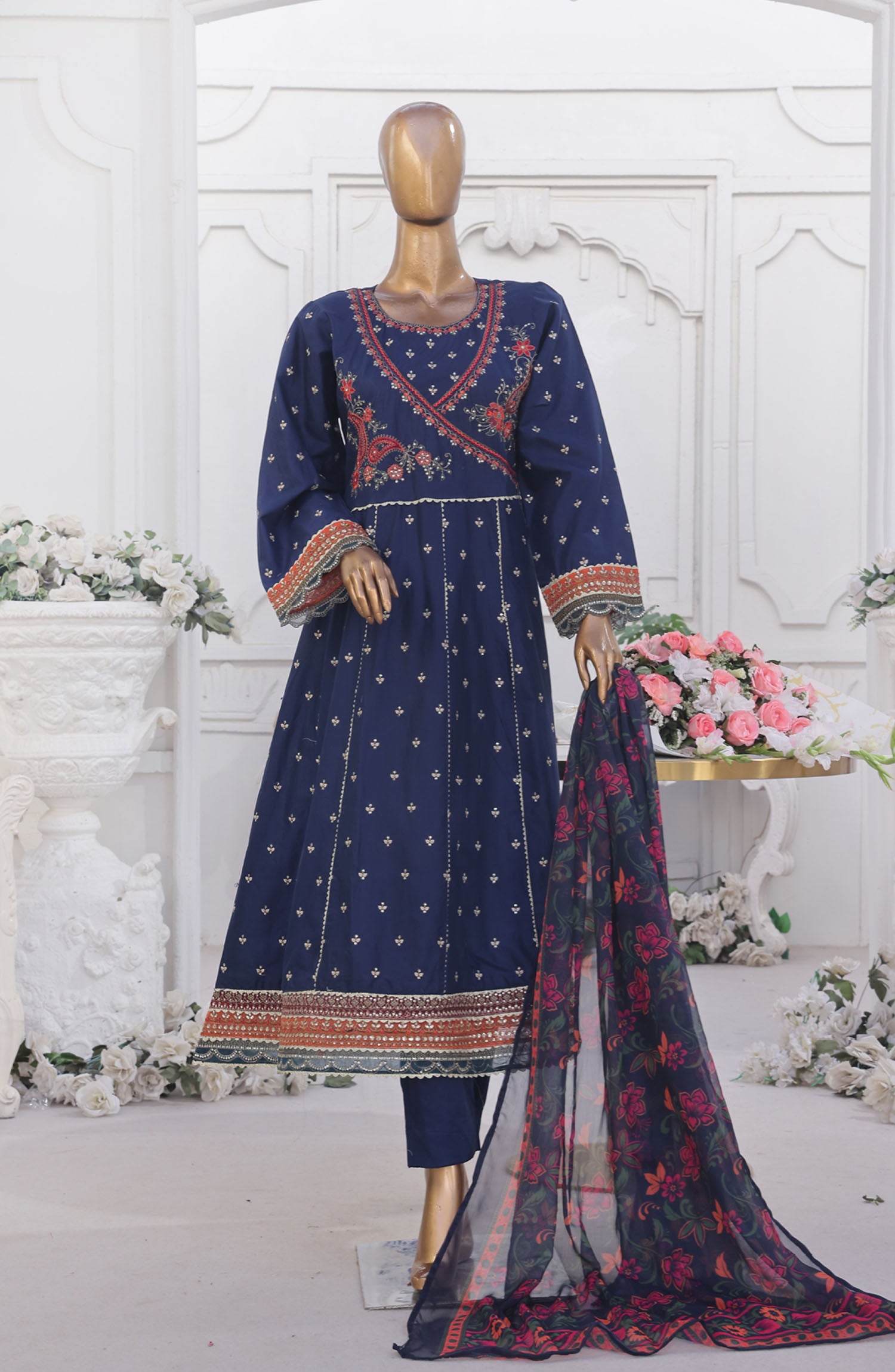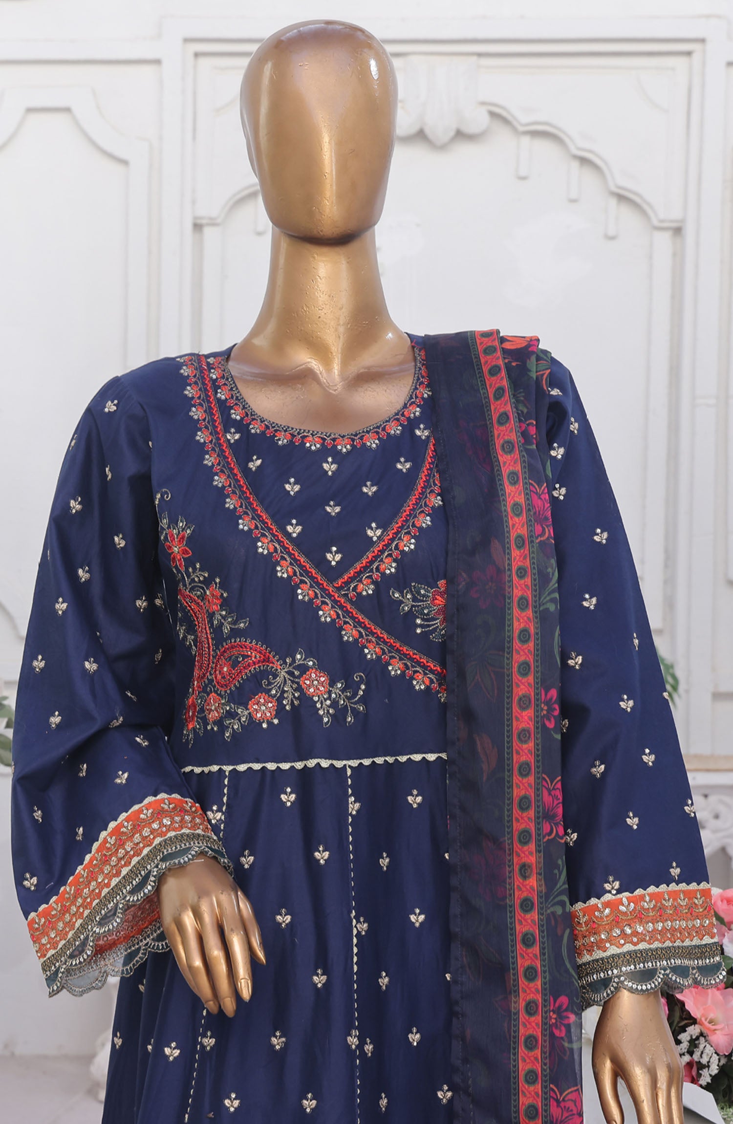 Home Bin Saeed Embroidered Cotton Stitched 3 Piece Frock - D-07 - BS25EEF - Blue - Festive Collection