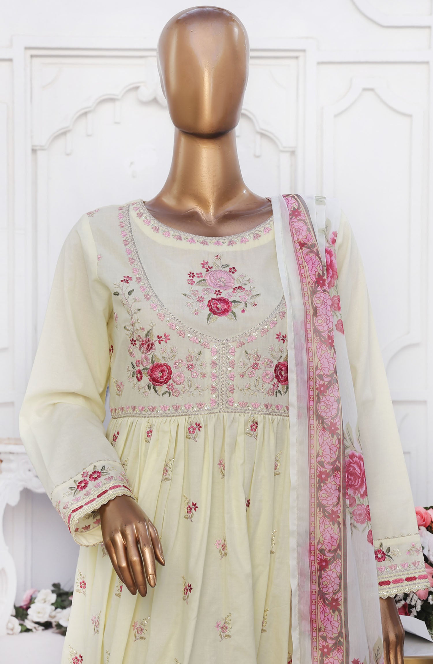 Luxury Plain Cotton Festive Frock 3Pc
