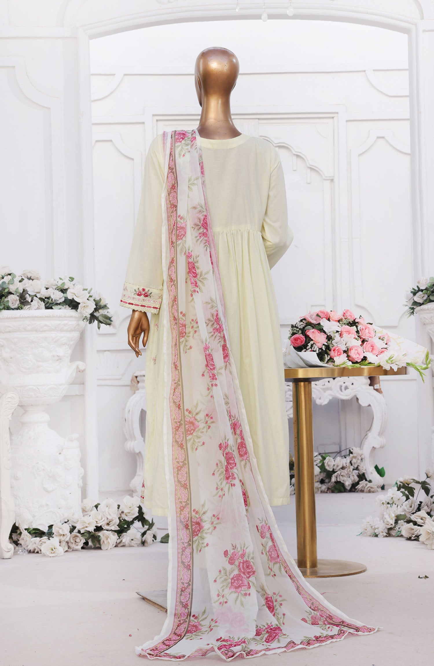 Home Bin Saeed Embroidered Cotton Stitched 3 Piece Frock - D-09 - BS25EEF - Yellow - Festive Collection
