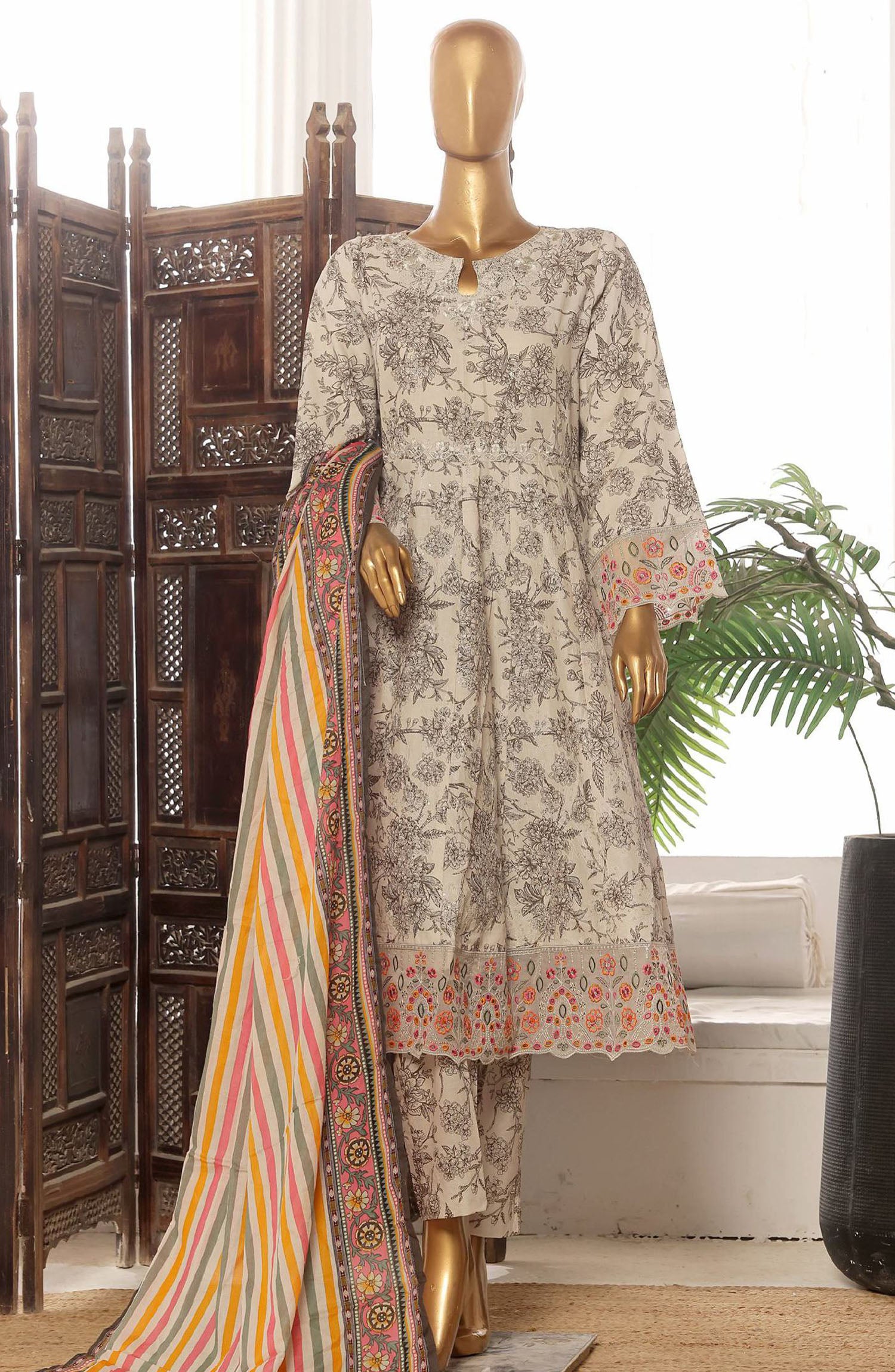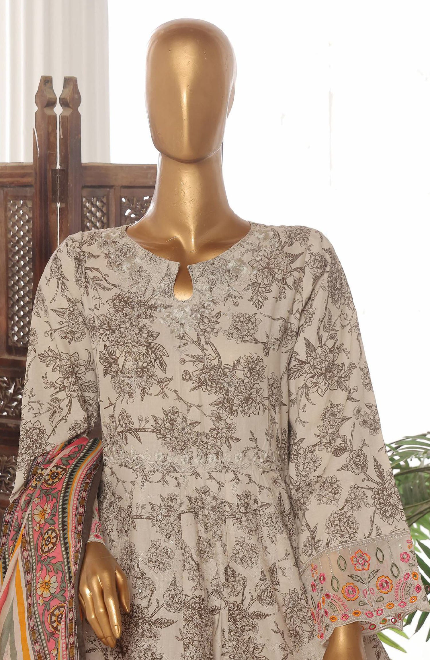 Home Bin Saeed Embroidered Lawn Stitched 3 Piece Frock - SM-617 - BS25LFV2 - Beige - Summer Collection