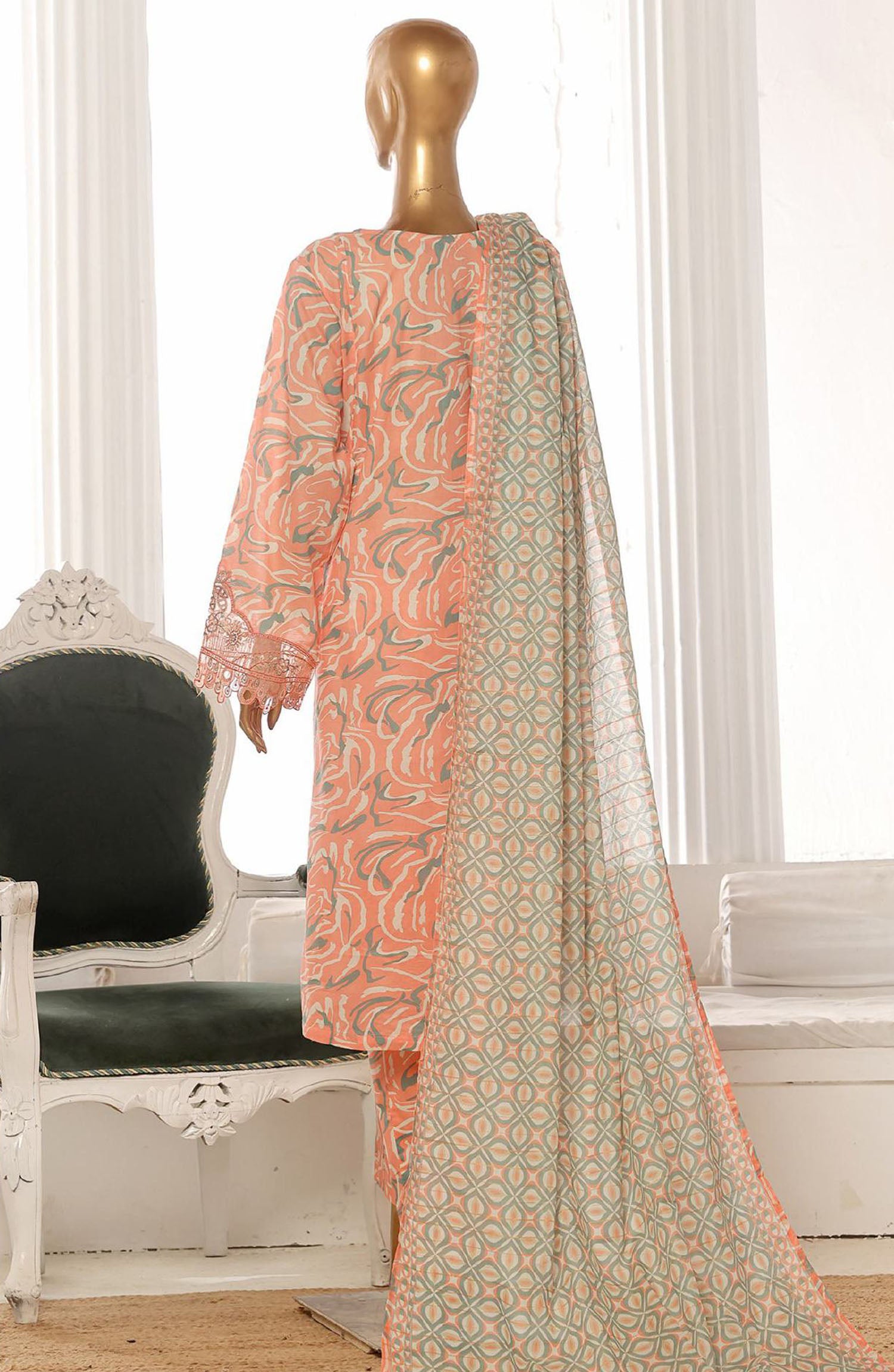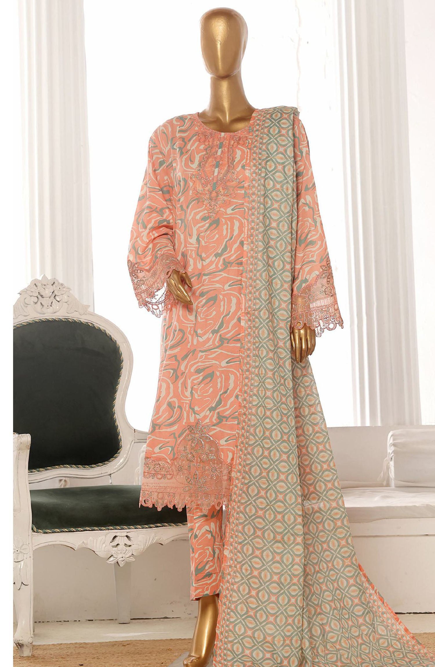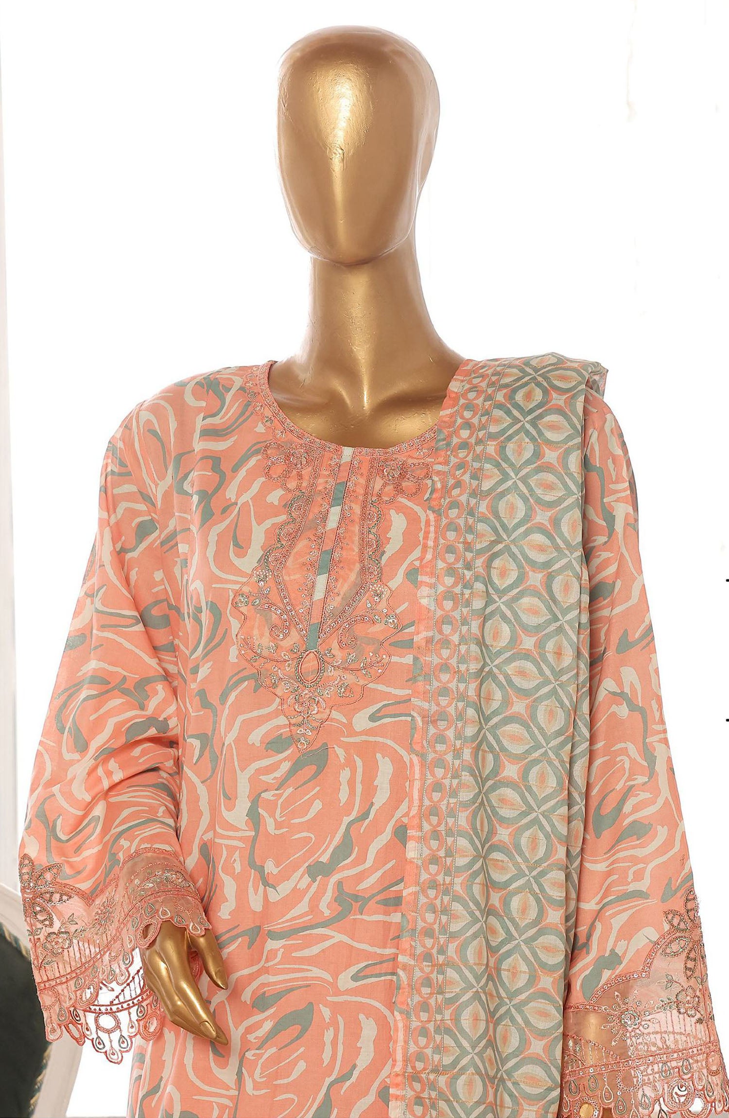Home Bin Saeed Embroidered Lawn Stitched 3 Piece Frock - SM-638 - BS25LFV2 - Peach - Summer Collection