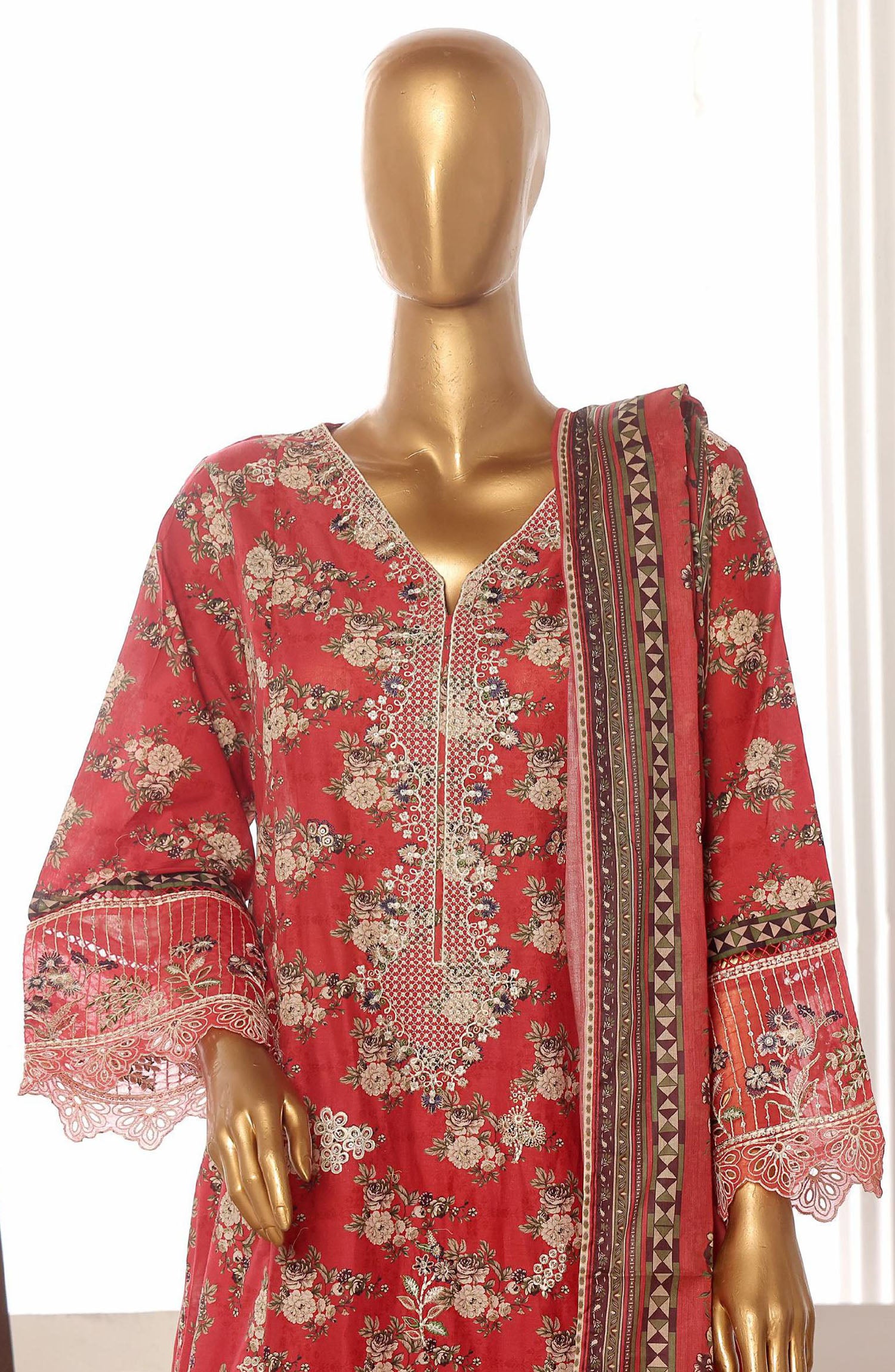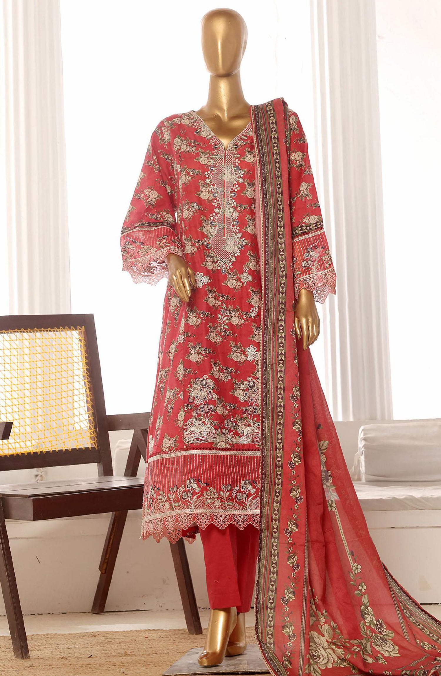 Home Bin Saeed Embroidered Lawn Stitched 3 Piece Frock - SM-785 - BS25LFV2 - Red - Summer Collection