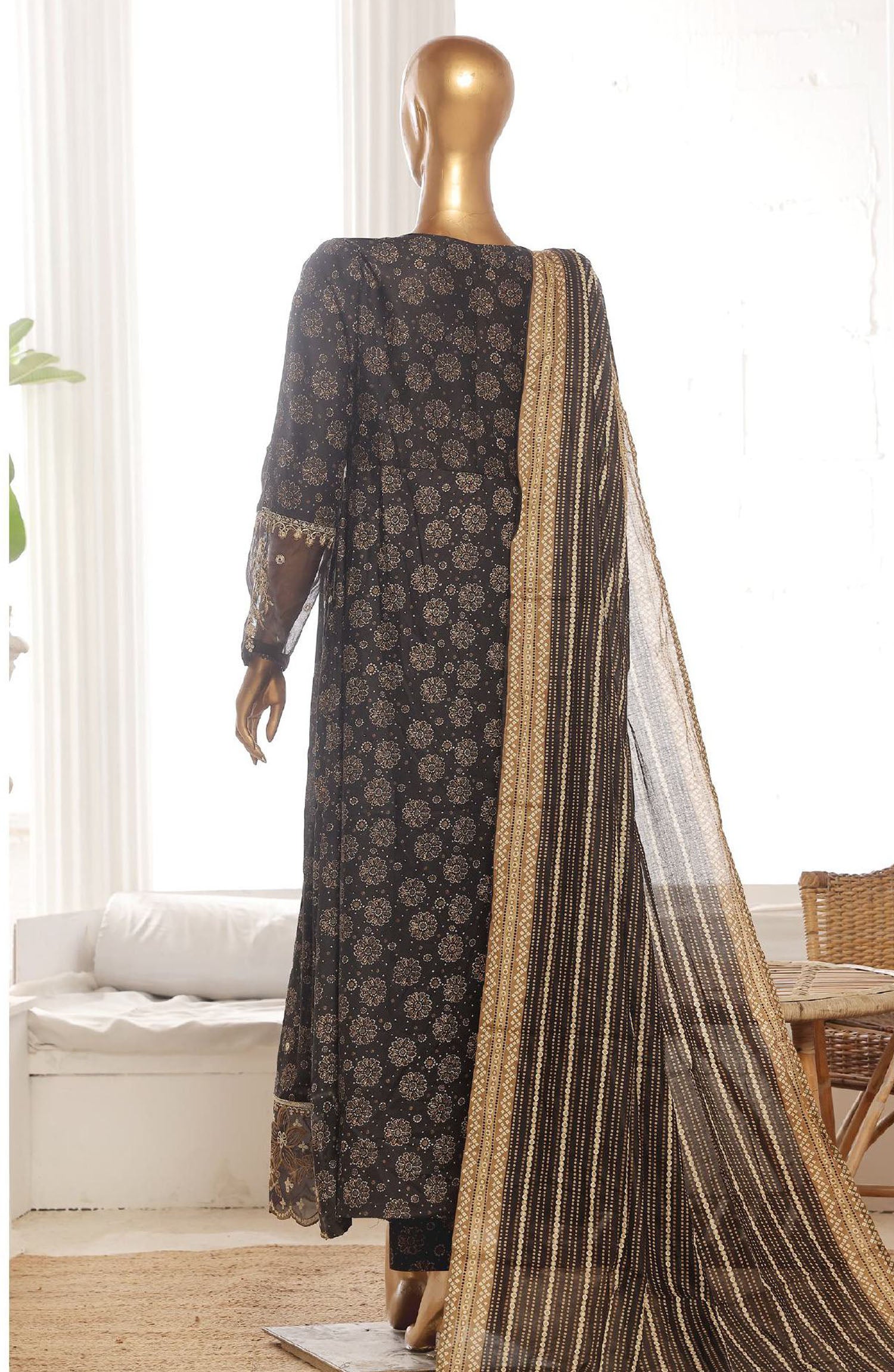 Home Bin Saeed Embroidered Lawn Stitched 3 Piece Frock - SM-790 - BS25LFV2 - Black - Summer Collection