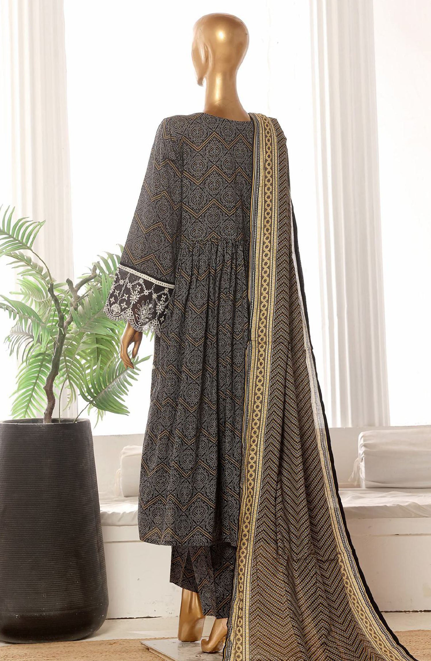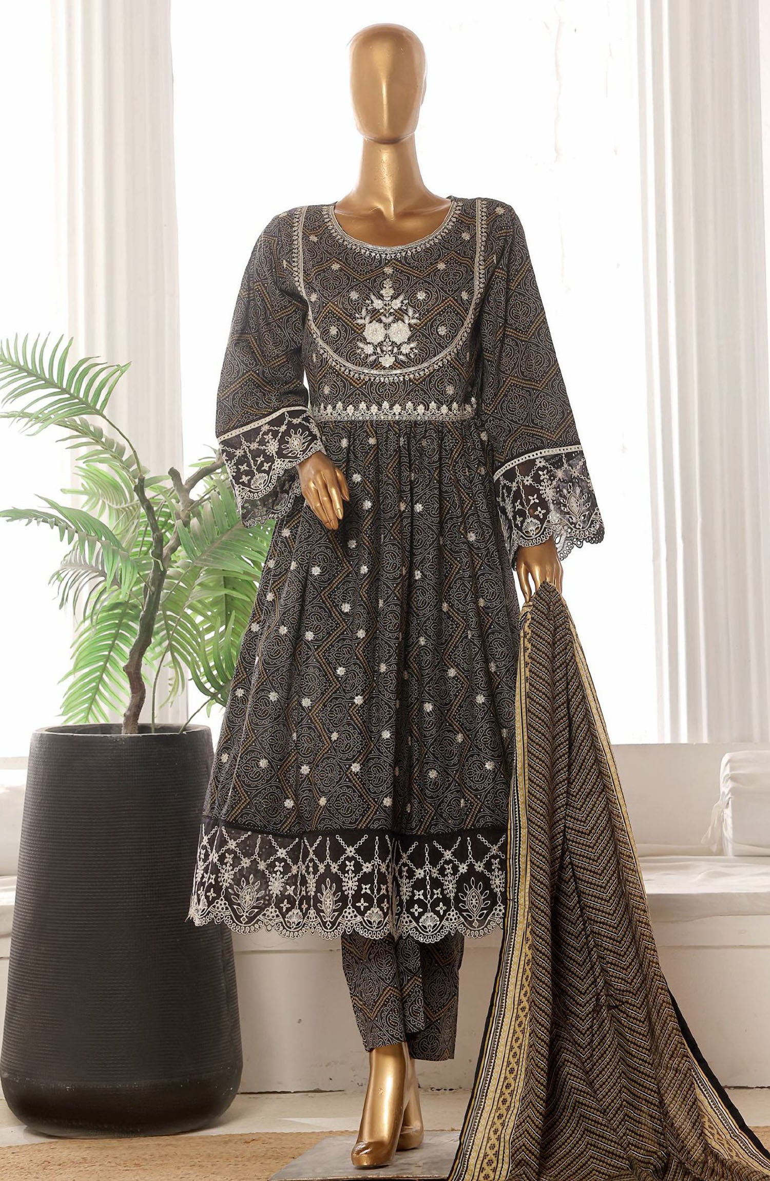 Home Bin Saeed Embroidered Lawn Stitched 3 Piece Frock - SM-801 - BS25LFV2 - Black - Summer Collection