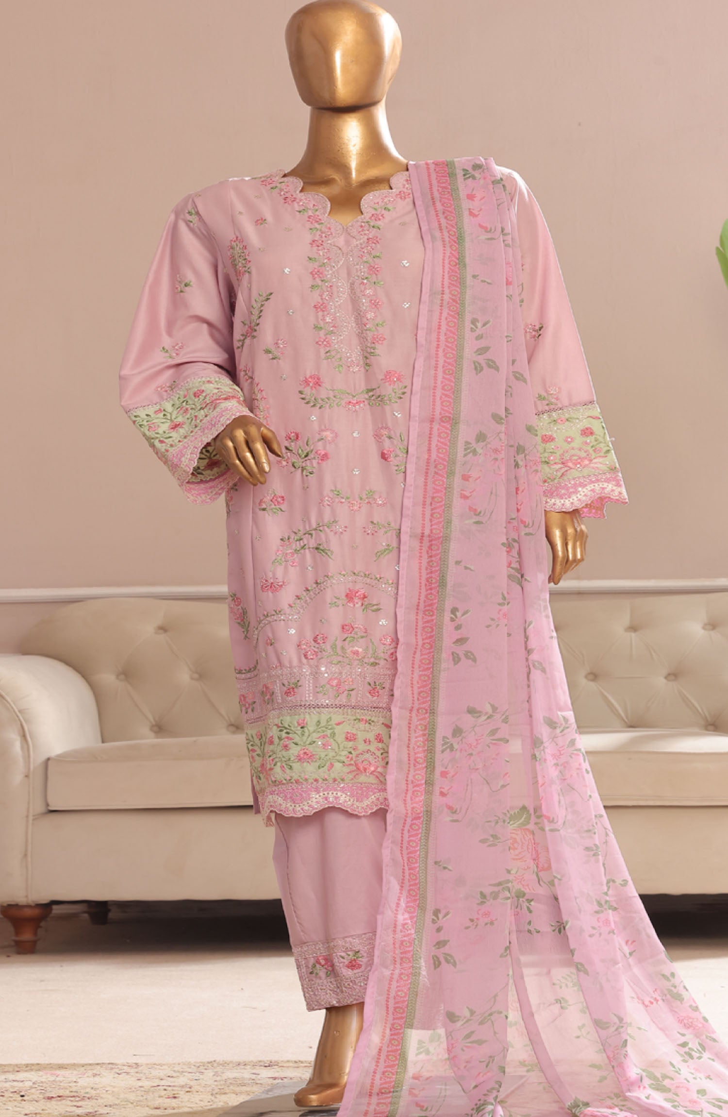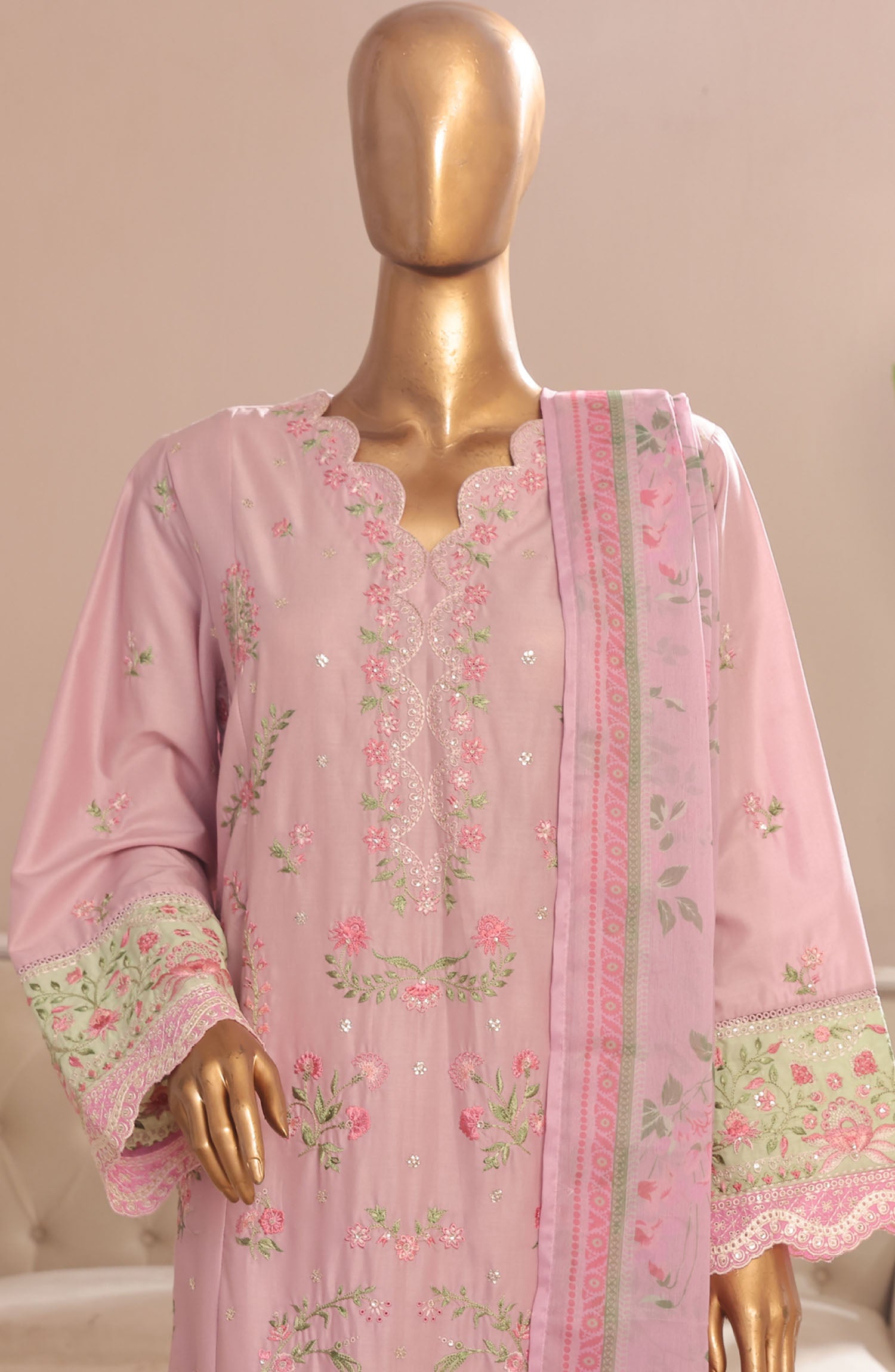 Home Bin Saeed Embroidered Cotton Stitched 3 Piece Suit - D-01 - BS25CE3PC - Pink - Summer Collection