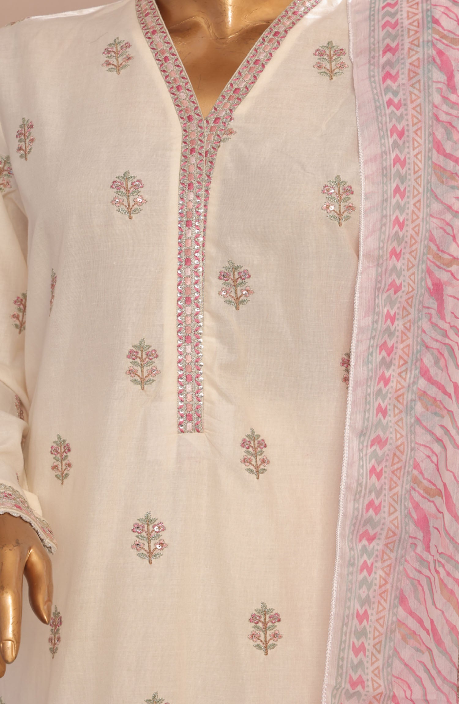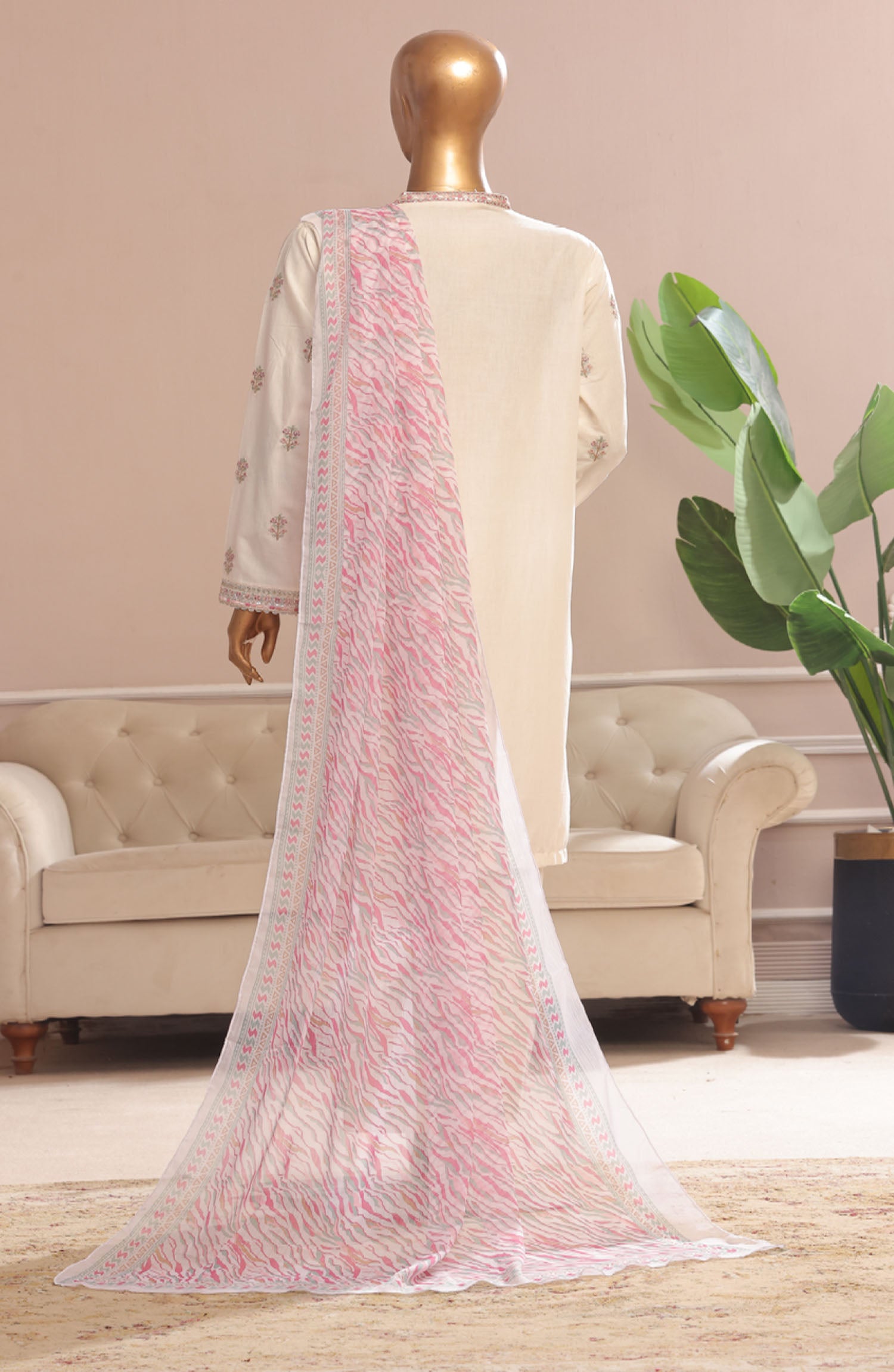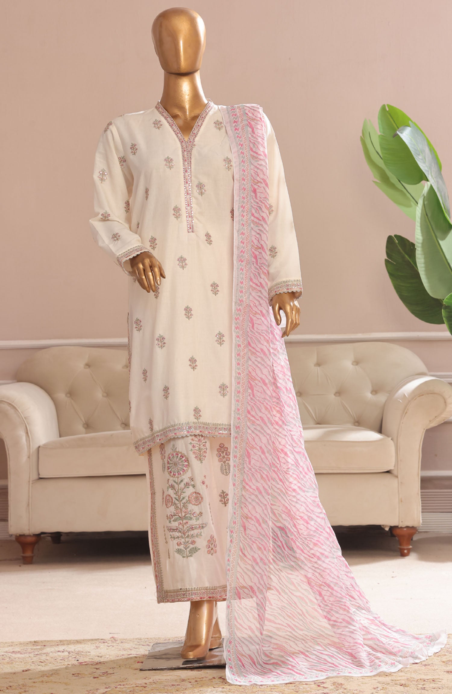 Home Bin Saeed Embroidered Cotton Stitched 3 Piece Suit - D-02 - BS25CE3PC - White - Summer Collection