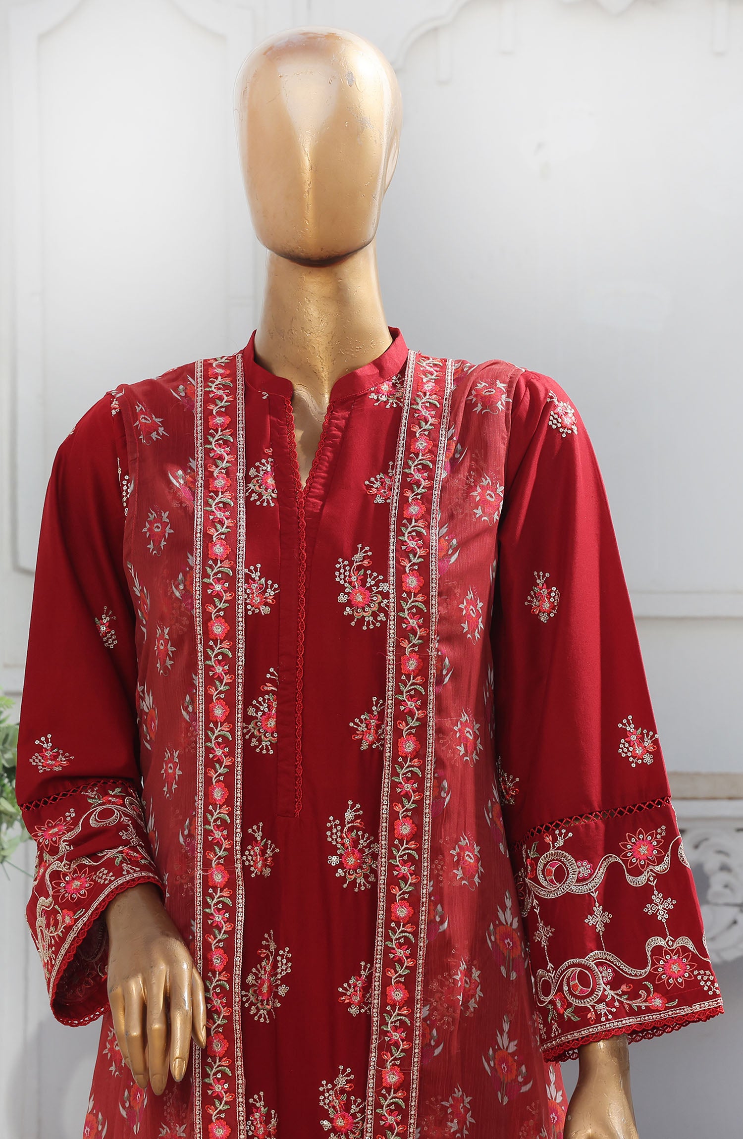 Bin Saeed Embroidered Cotton Stitched 3 Piece Suit - D-03 - BS25EKJ - Red - Summer Collection