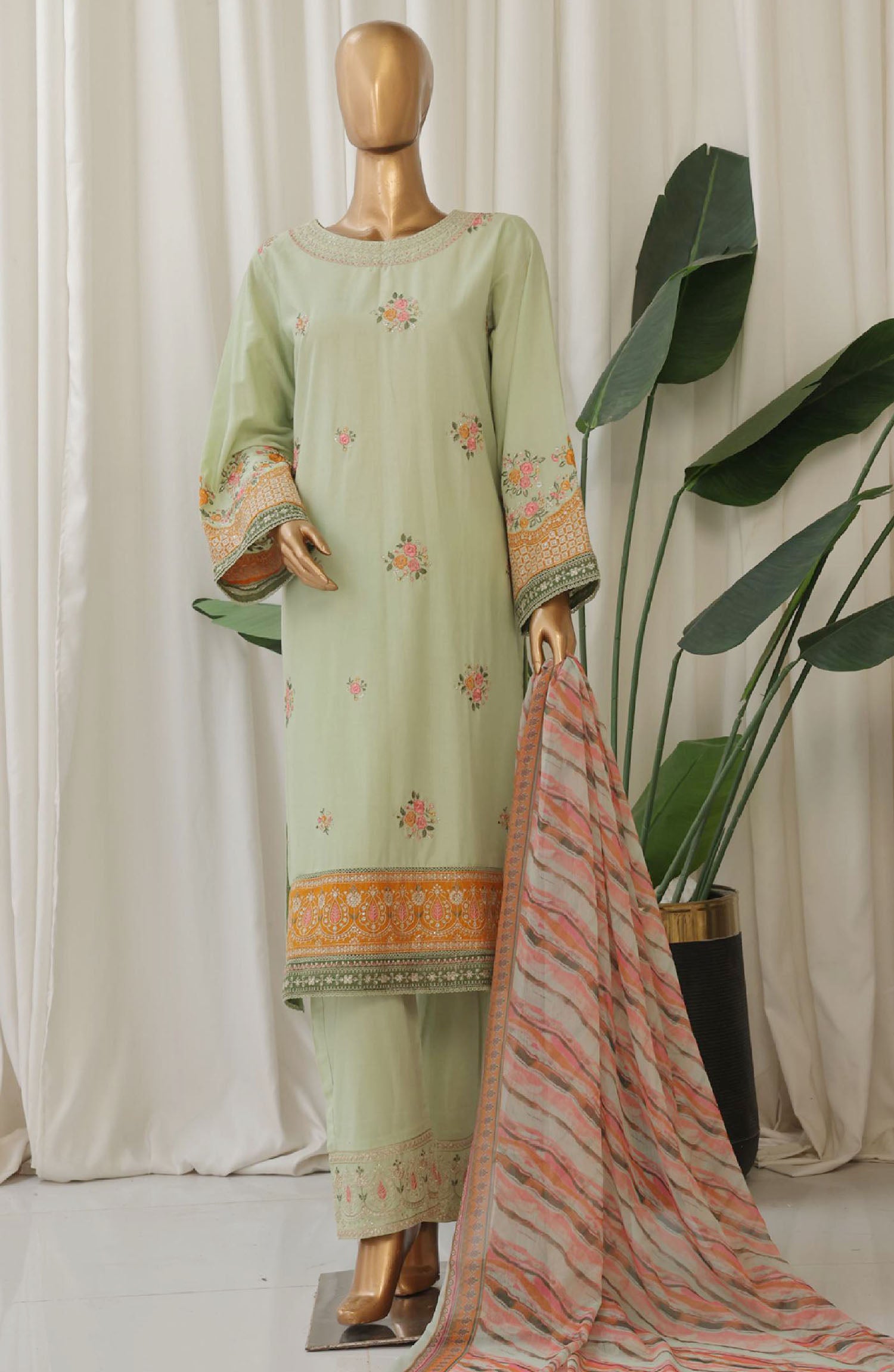 Home Bin Saeed Embroidered Cotton Stitched 3 Piece Suit - D-03 - BS25TC - Green - Summer Collection