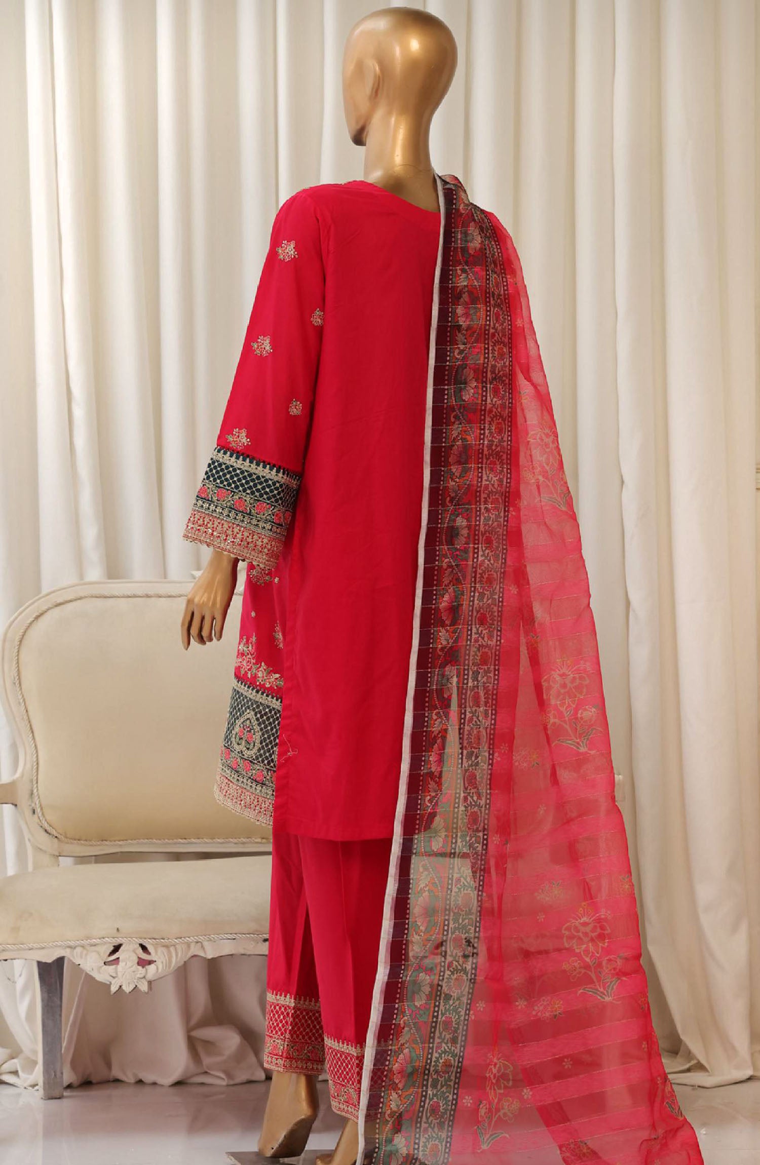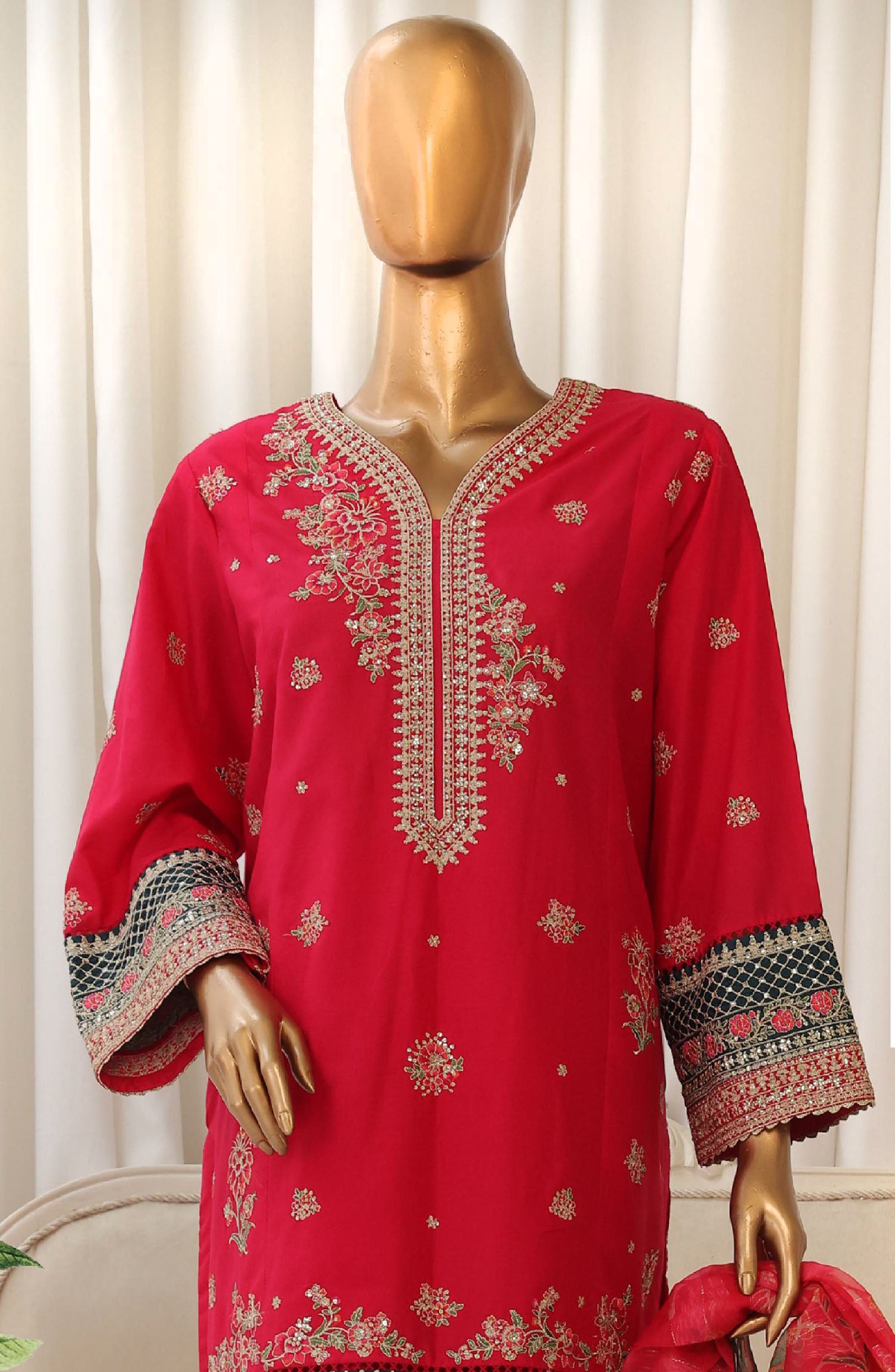 Bin Saeed Embroidered Cotton Stitched 3 Piece Suit - D-04 - BS25TC - Red - Summer Collection