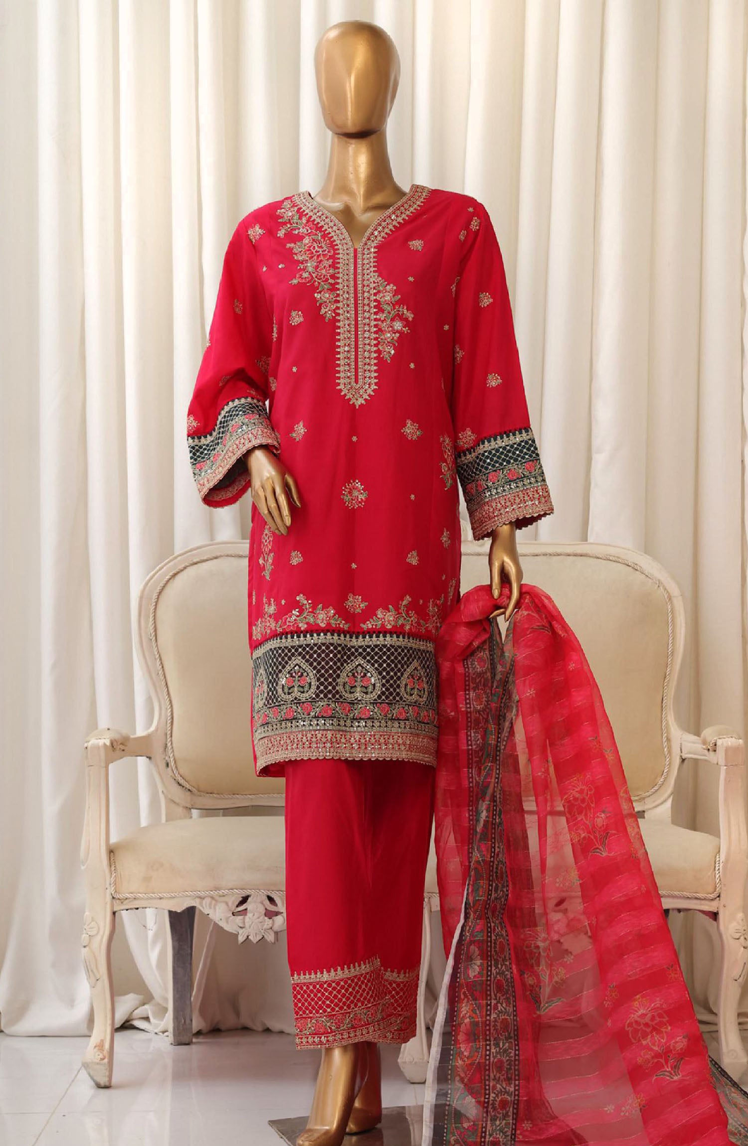 Home Bin Saeed Embroidered Cotton Stitched 3 Piece Suit - D-04 - BS25TC - Red - Summer Collection