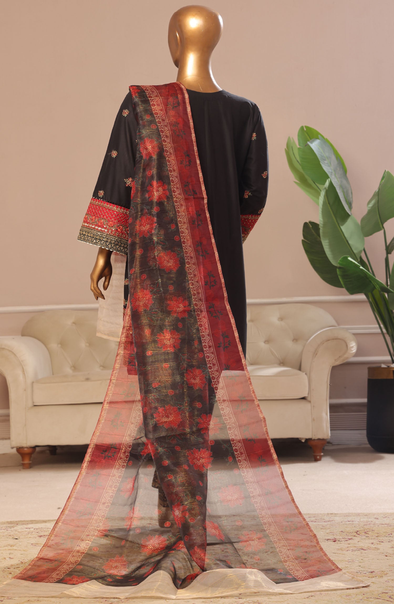 Home Bin Saeed Embroidered Cotton Stitched 3 Piece Suit - D-06 - BS25CE3PC - Black - Summer Collection