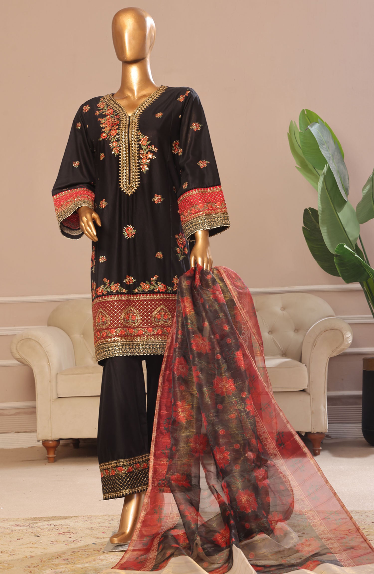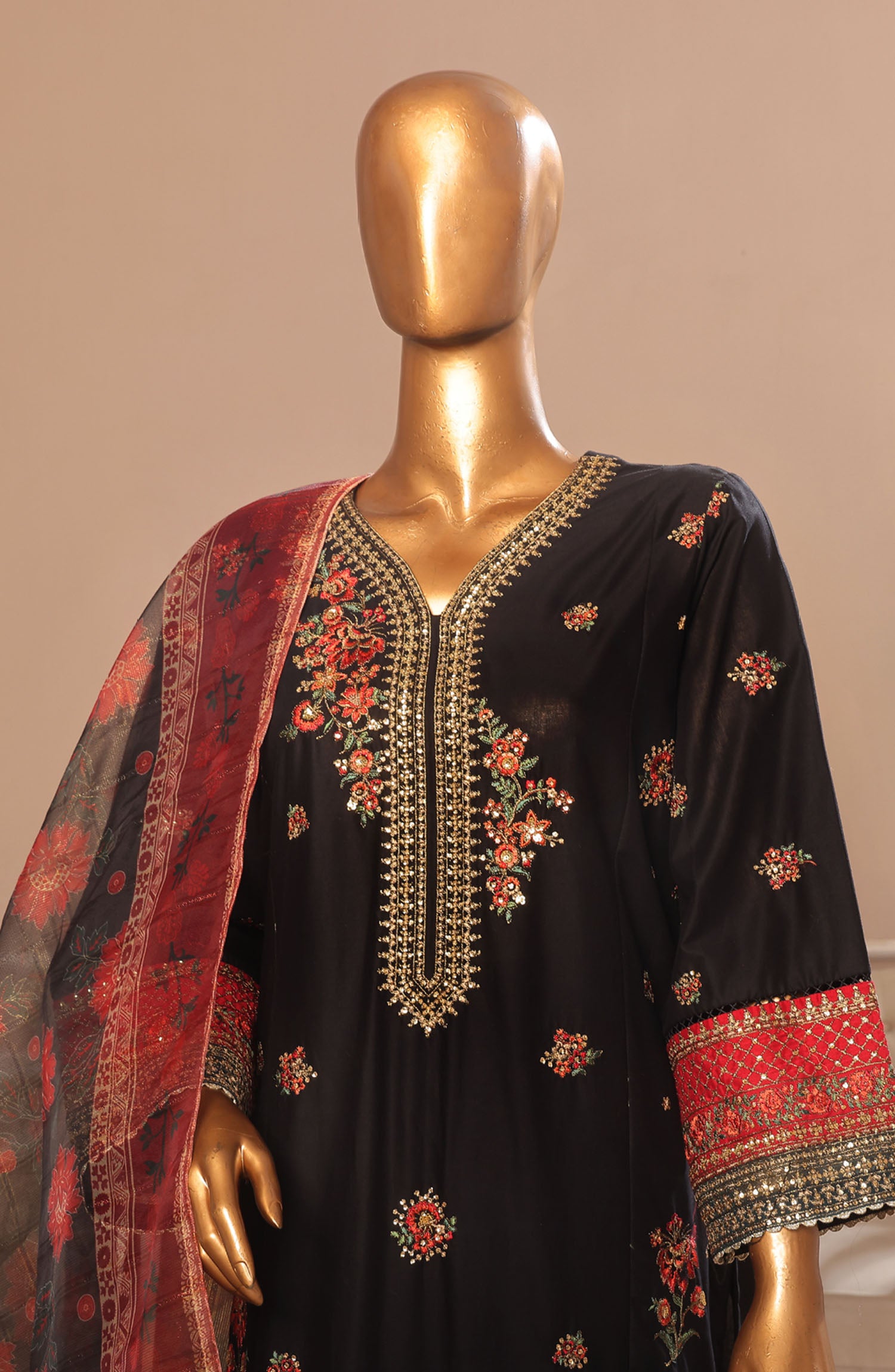 Modest Embroidered Khaddar Stitched 3 Piece Suit - 9990-Blk - MOD25WNT - Black - Winter Collection