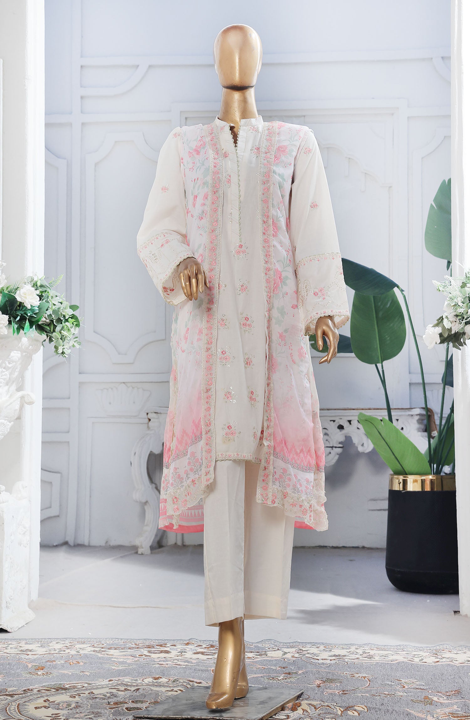 Home Bin Saeed Embroidered Cotton Stitched 3 Piece Suit - D-06 - BS25EKJ - White - Summer Collection